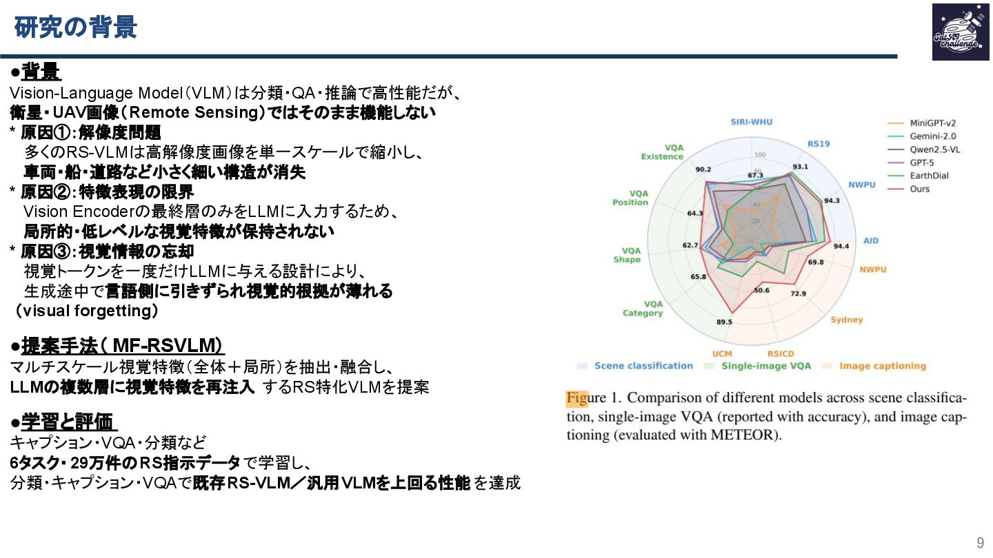本研究は、衛星・UAV画像を対象に、マルチスケール視覚特徴の融合と再注入によって、