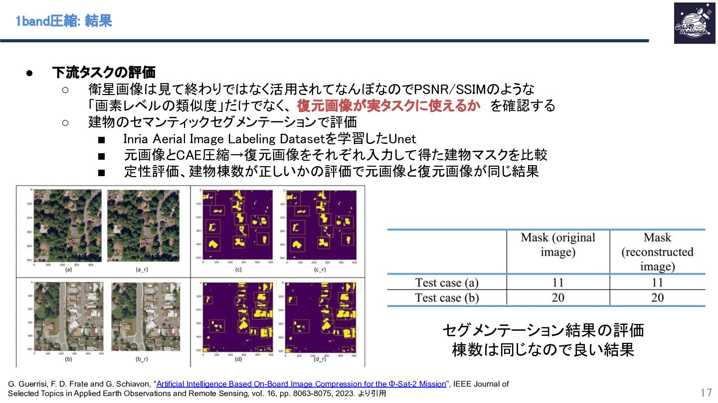 Guerrisi, F. D. Frate and G. Schiavon, “Artificial Intelligence Based On-Board Image Compression for the Φ-Sat-2 Mission”, IEEE Journal of Selected Topics in Applied Earth Observations and Remote Sensing, vol. 16, pp. 8063-8075, 2023. より引用