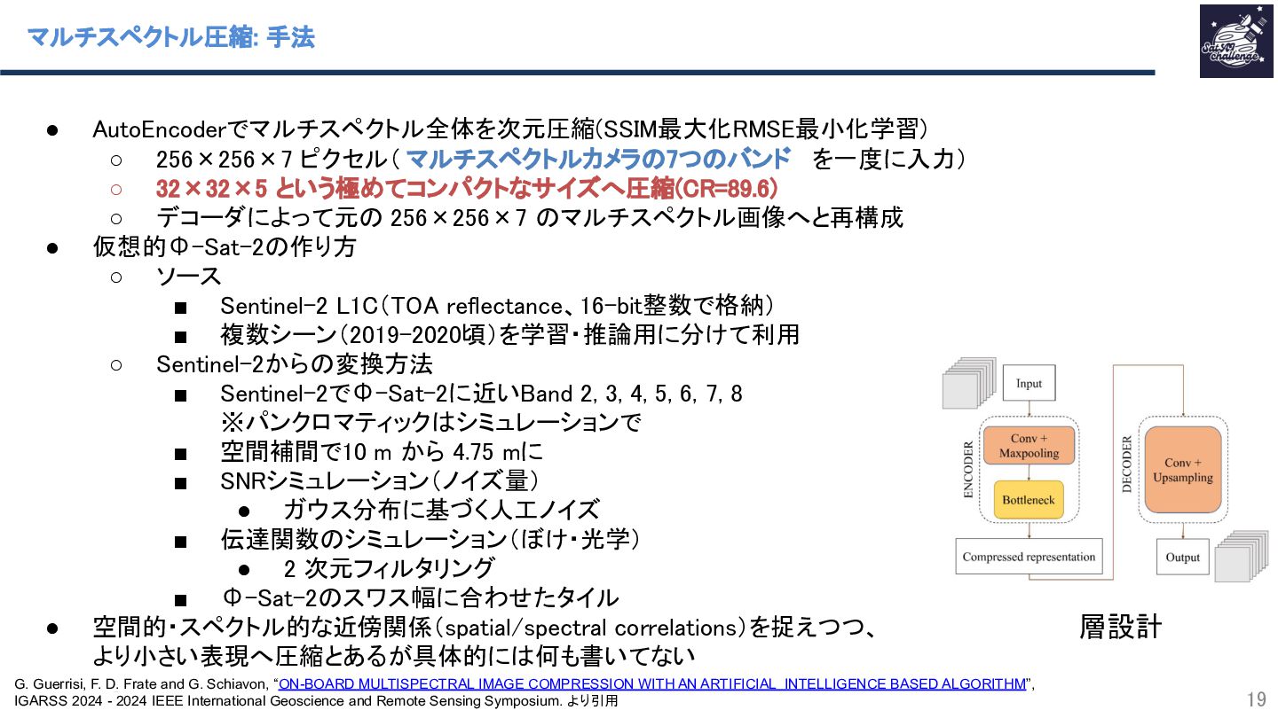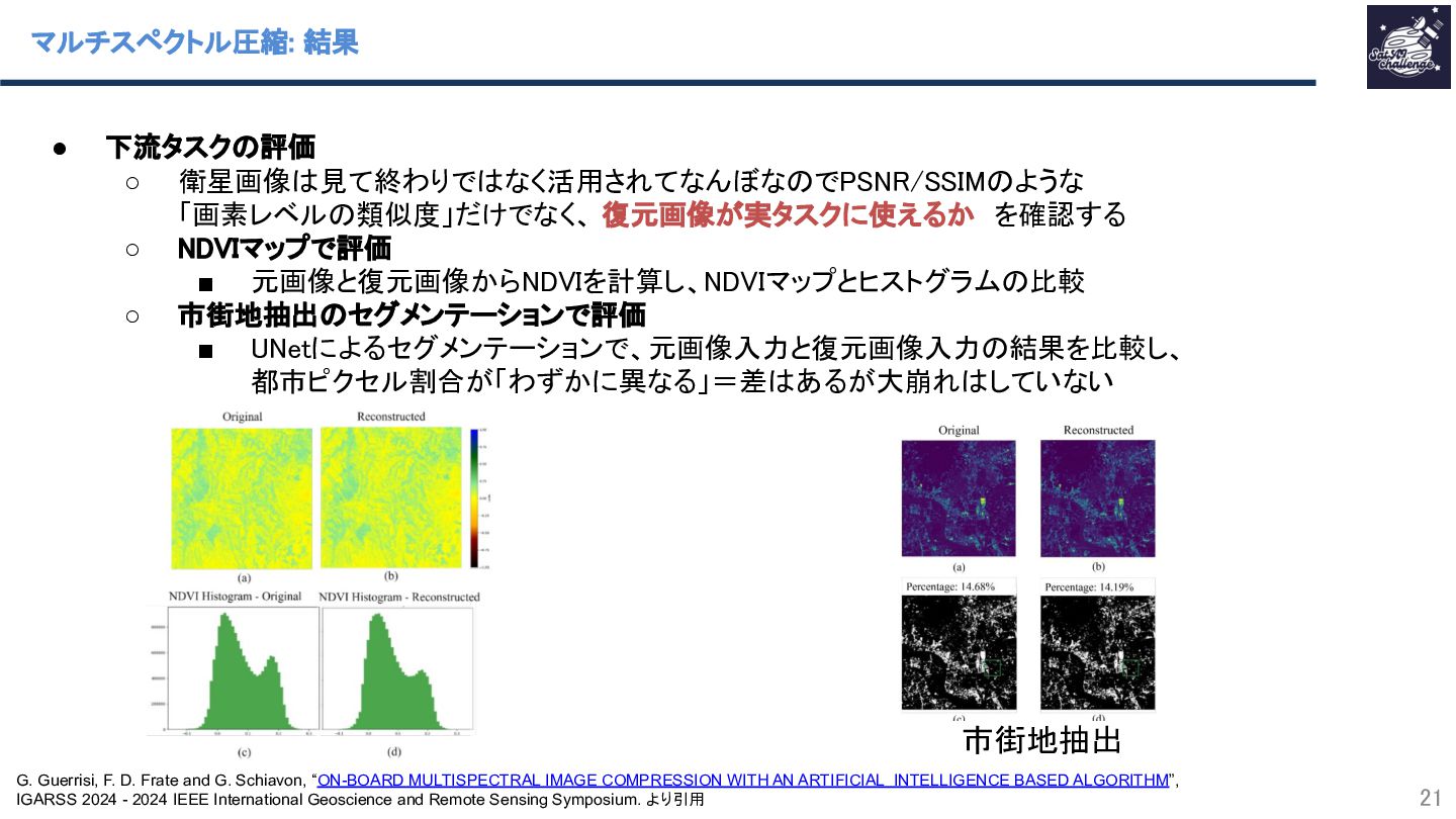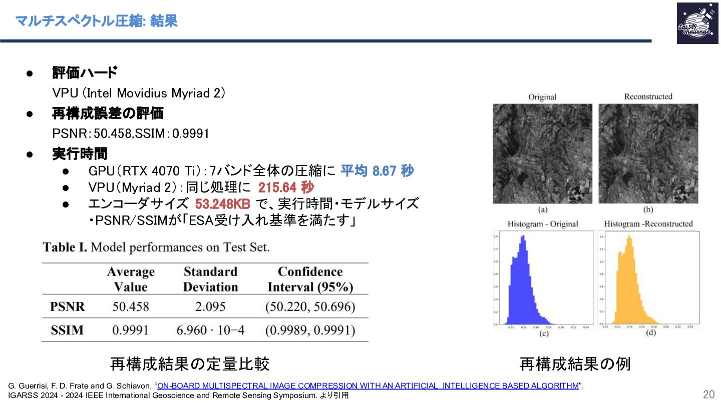 G. Guerrisi, F. D. Frate and G. Schiavon, “ON-BOARD MULTISPECTRAL IMAGE COMPRESSION WITH AN ARTIFICIAL INTELLIGENCE BASED ALGORITHM”, IGARSS 2024 - 2024 IEEE International Geoscience and Remote Sensing Symposium. より引用