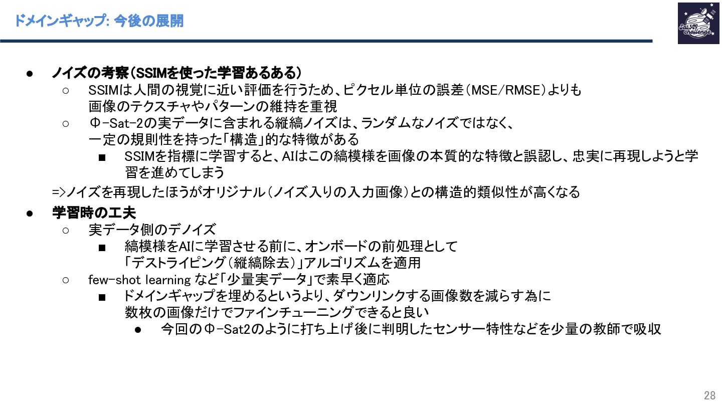 • 今回のΦ-Sat2のように打ち上げ後に判明したセンサー特性などを少量の教師で吸収
