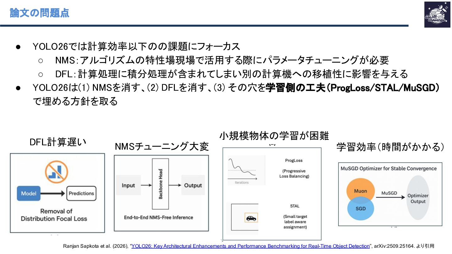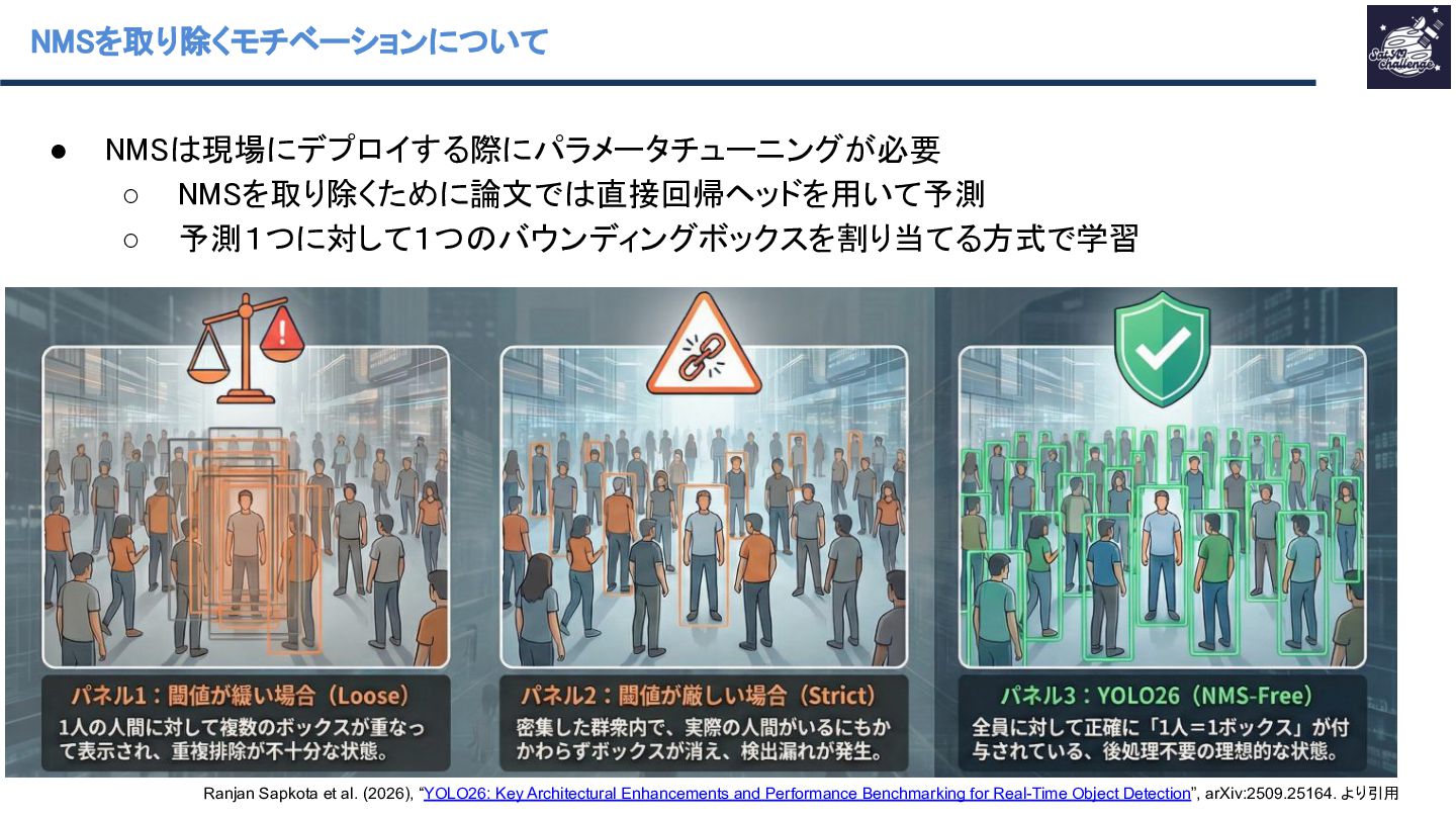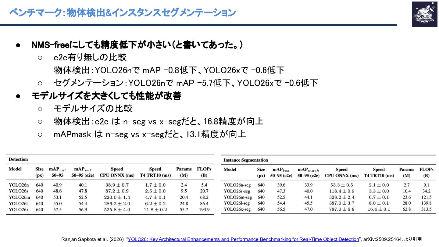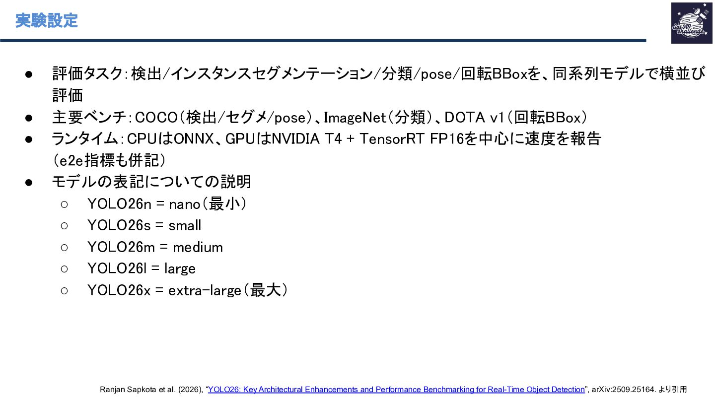 Ranjan Sapkota et al. (2026), “YOLO26: Key Architectural Enhancements and Performance Benchmarking for Real-Time Object Detection”, arXiv:2509.25164. より引用