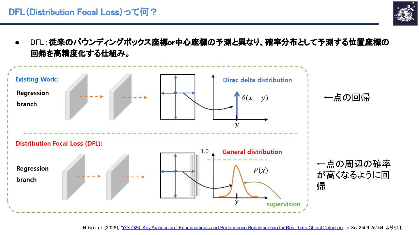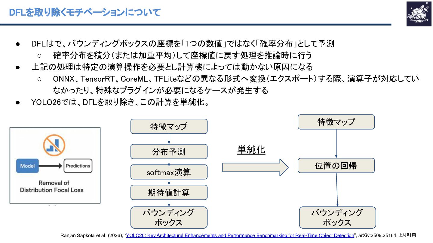 従来OLOシリーズで活用された、「NM(Non-Maximum uppression)」と「DFL(Distribution Focal Loss)」