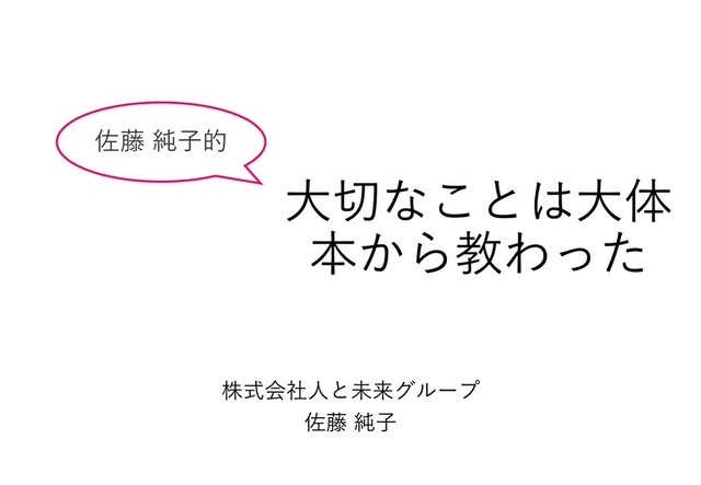 人と未来グループ 佐藤純子のPRLT#13登壇資料です。 ご紹介本 ・中村由美 著 日本一秘書の気配り力 ・藤沢晃治 著 わかりやすい文章の技術 ・本田 哲也 著 6 RULES OF STRATEGIC PR おまけ ・スウェーデン式アイデアブック ・考具 ・意思の力・愛の実力
