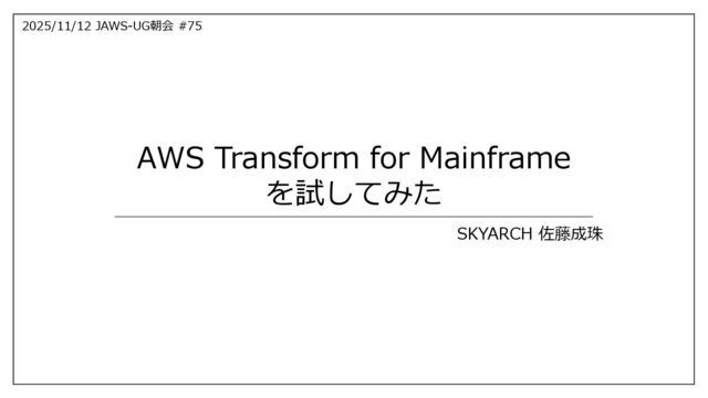 2025/11/12 JAWS-UG朝会 #75 SKYARCH 佐藤成珠 AWS Transform for Mainframe を試してみた