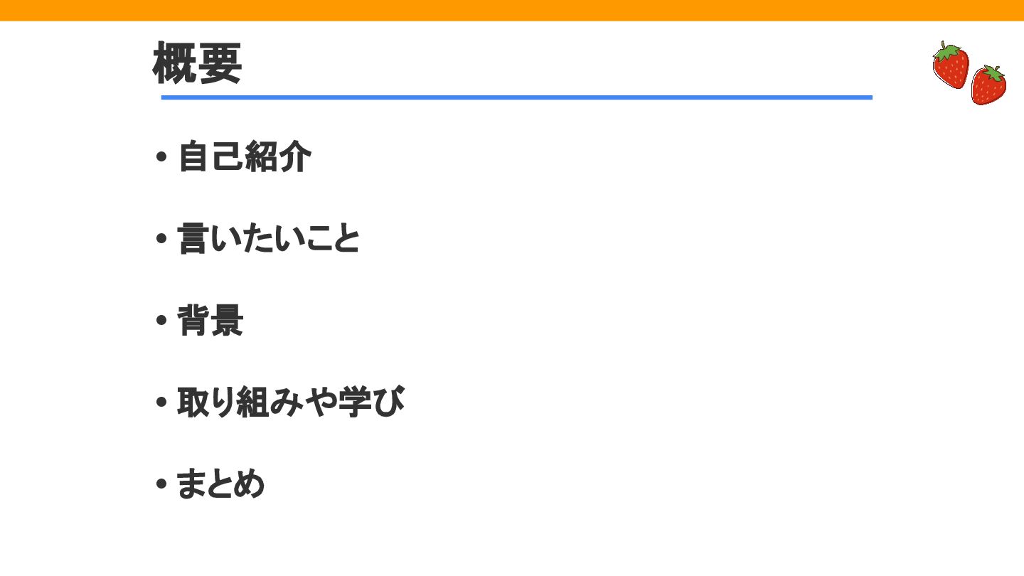 概要 • 自己紹介 • 言いたいこと • 背景 • 取り組みや学び •