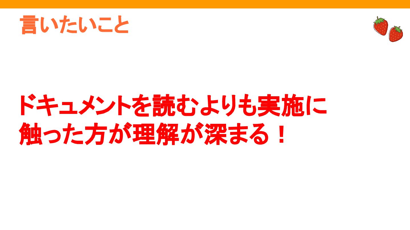言いたいこと ドキュメントを読むよりも実施に 触った方が理解が深まる!