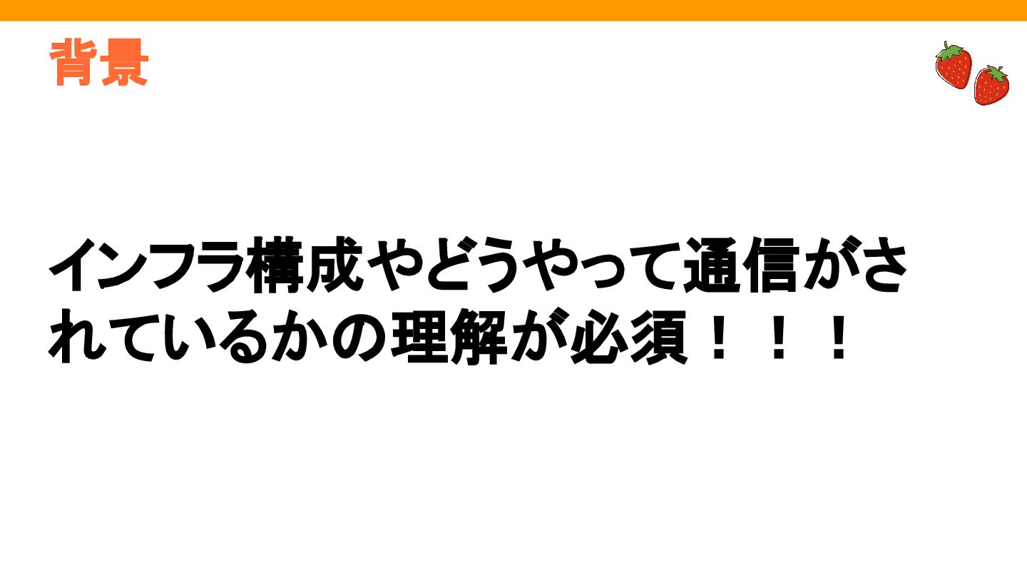 背景 インフラ構成やどうやって通信がさ れているかの理解が必須!!!