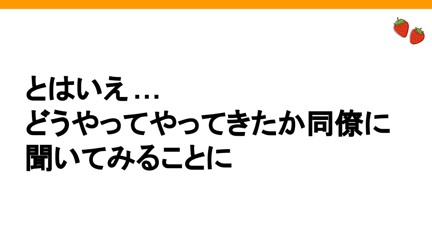 とはいえ… どうやってやってきたか同僚に 聞いてみることに