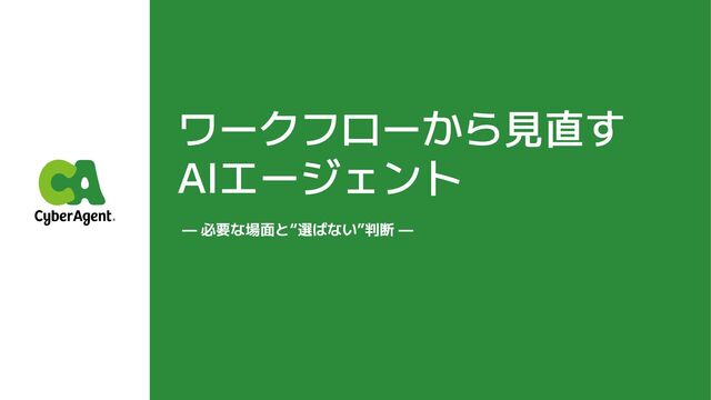 ワークフローから見直す AIエージェント — 必要な場面と“選ばない”判断 —