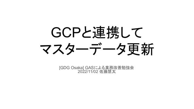 GCPと連携して マスターデータ更新 [GDG Osaka] GASによる業務改善勉強会 2022/11/02 佐藤慧太