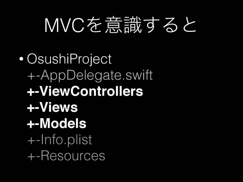 MVCΛҙࣝ͢Δͱ • OsushiProject +-AppDelegate.swift +-ViewControllers +-Views +-Models +-Info.plist +-Resources