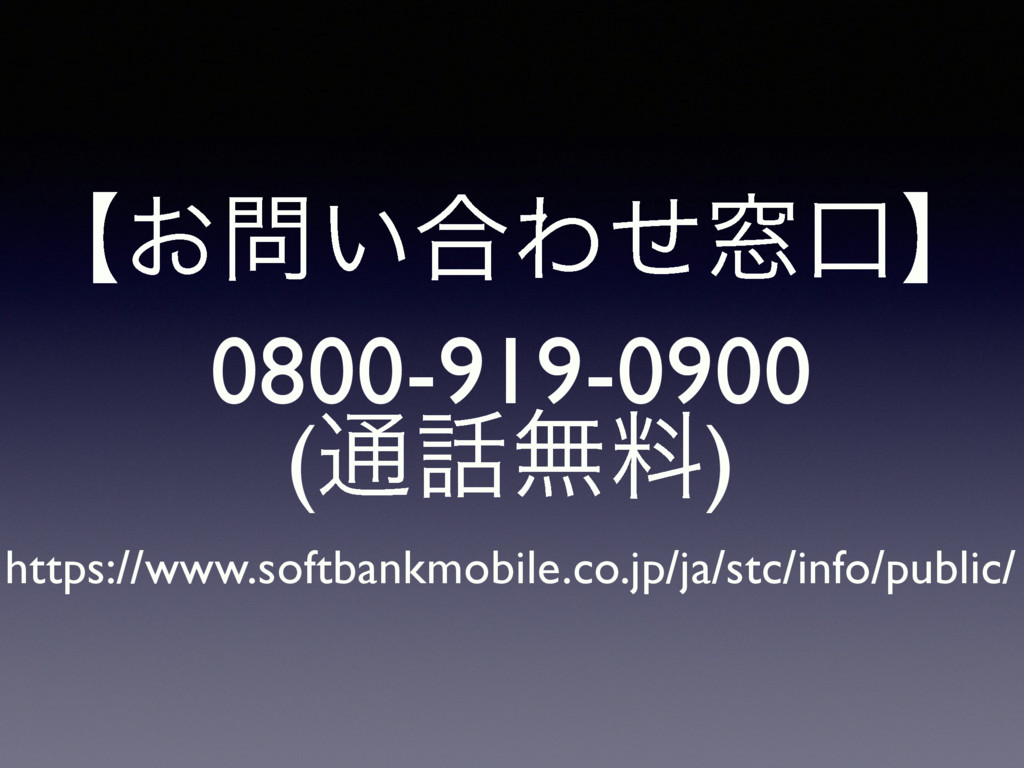 ʲ͓͍߹Θͤ૭ޱʳ 0800-919-0900 (௨ແྉ) https://www.softbankmobile.co.jp/ja/stc/info/public/