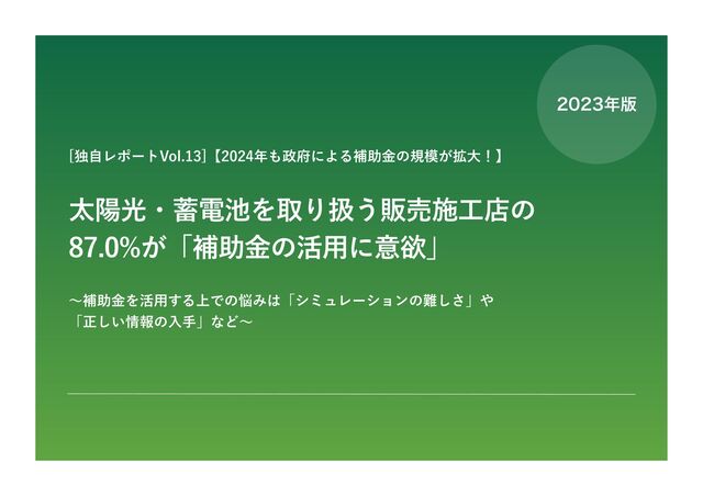 太陽光・蓄電池を取り扱う販売施工店の87.0%が「補助金の活用に意欲」。~補助金を活用する上での悩みは「シミュレーションの難しさ」や「正しい情報の入手」など~