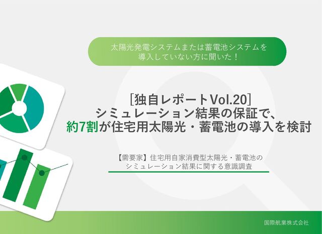 [独自レポートVol.20]シミュレーション結果の保証で、 約7割が住宅用太陽光・蓄電池の導入を検討 〜65.4%が保証があると導入に関する家族の同意を「得やすくなる」と回答〜 | 国際航業株式会社 https://www.kkc.co.jp/service/blog/enegaeru/research/article/22945/