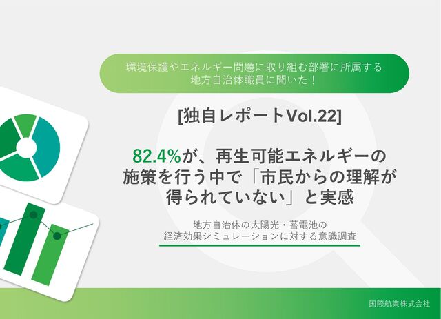 [独自レポートVol.22]【自治体に調査】82.4%が、再生可能エネルギーの施策を行う中で「市民からの理解が得られていない」と実感 「経済的負担」や「経済効果の不透明さ」に課題の声〜80.4%が、太陽光・蓄電池導入の際、経済効果シミュレーション結果を保証する制度があれば「スムーズに普及する」と期待〜