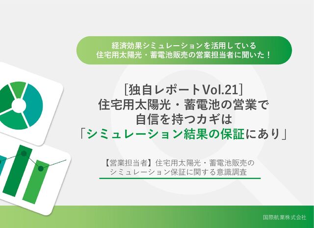 [独自レポートVol.21]住宅用太陽光・蓄電池の営業で自信を持つカギは「シミュレーション結果の保証にあり」 〜83.9%の営業担当者が、お客様から「経済効果シミュレーション結果の信憑性」を疑われた経験あり〜 | 国際航業株式会社 https://www.kkc.co.jp/service/blog/enegaeru/research/article/23071/