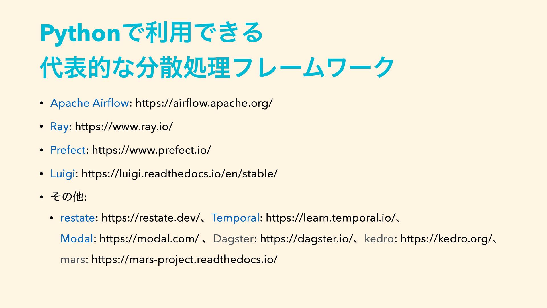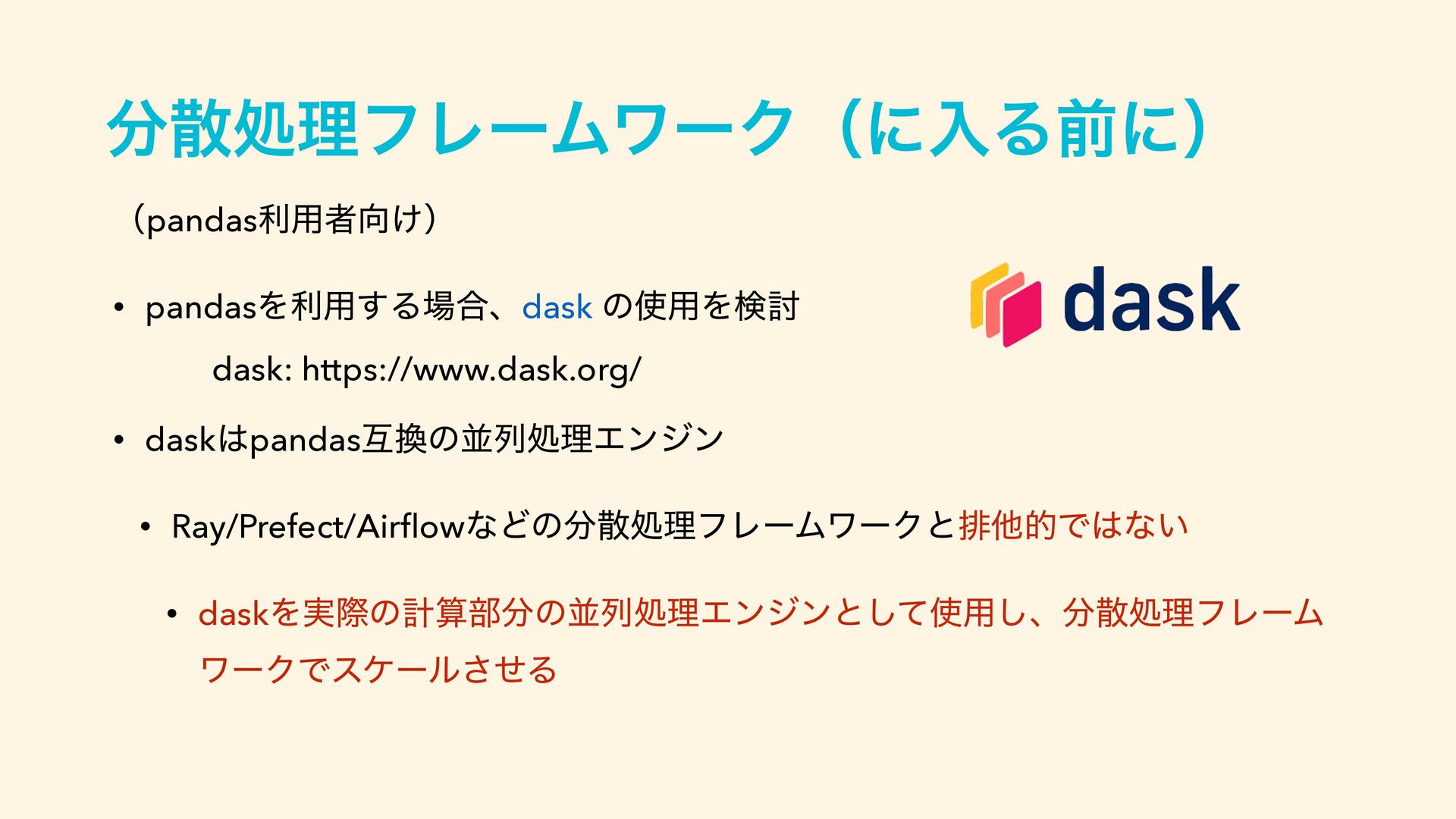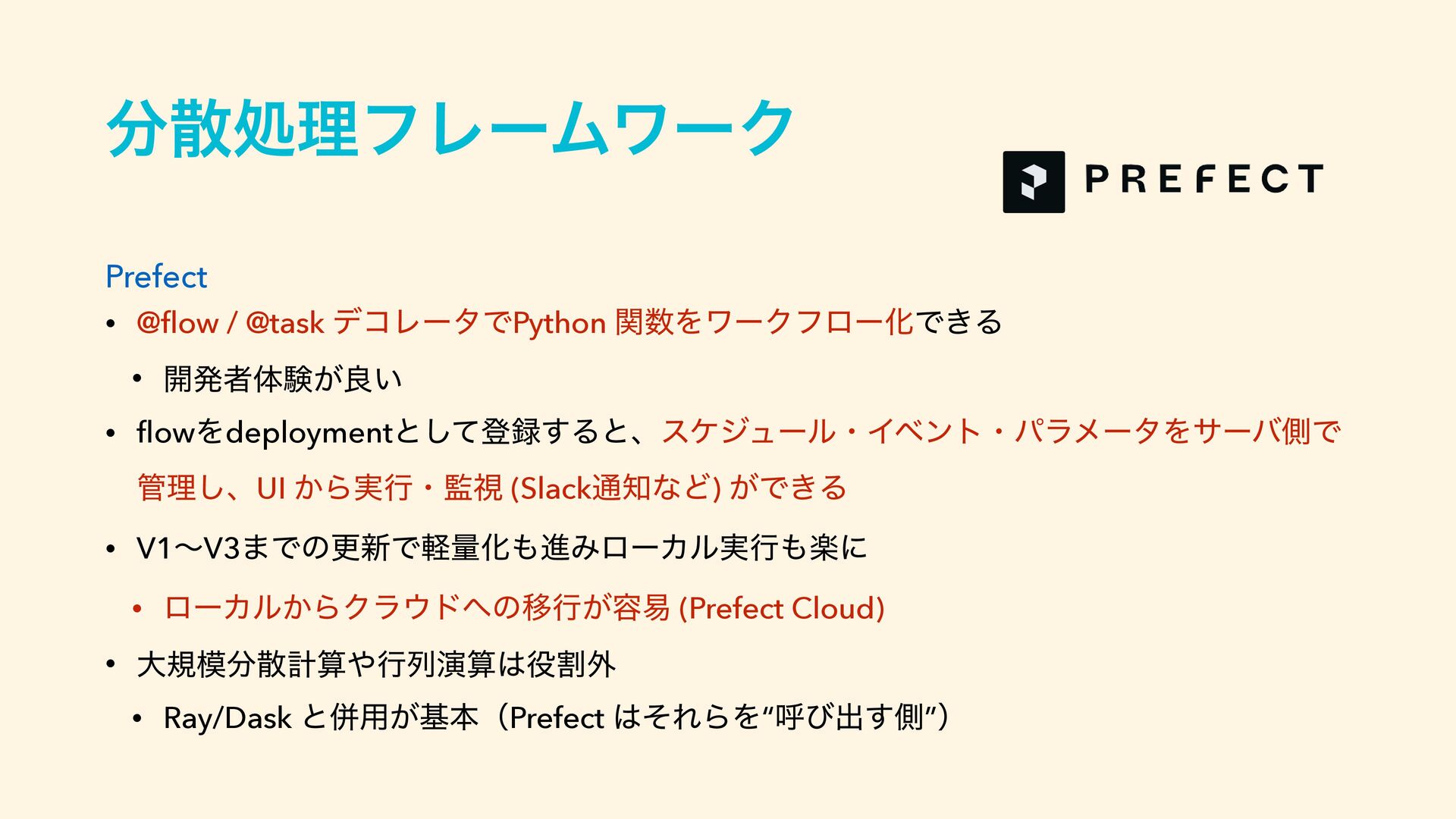 そんなときに役立つのが、Dask、Ray、Prefectなどの「分散処理」や「ワークフロー管理」に関わる様々な分散フレームワークたちです。