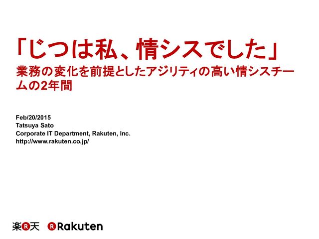 企業の情報シスは、少ない予算と人的リソースの中でリリースしたのに、実際の現場から使えないと言われる過酷な現場に見えます。しかし一方で、ユーザーである社員が近く、リリースは調整し易く、 直接コミュニケーションしながら課題を一緒に解決でき、社外向けの開発では得難い経験ができる現場とも言えます。グローバル化を推進する企業の情報シスで、私達は少ないメンバーで自ら要求を発見し、作り、実際に試してもらい、改善を続けてきました。本講演では、その過程で発見したことを共有します 。