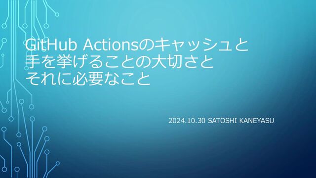 GitHub Actionsのキャッシュと 手を挙げることの大切さと それに必要なこと 2024.10.30 SATOSHI KANEYASU