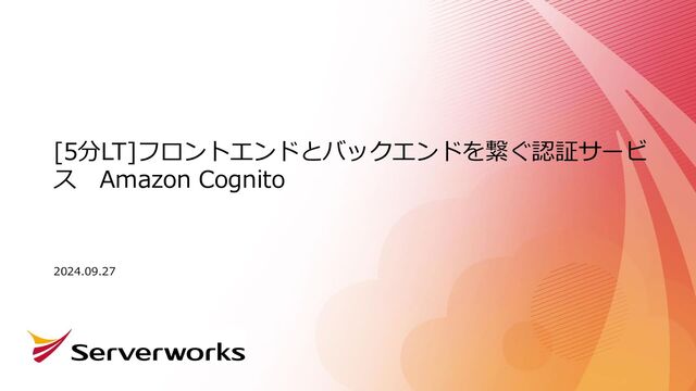 [5分LT]フロントエンドとバックエンドを繋ぐ認証サービ ス Amazon Cognito 2024.09.27