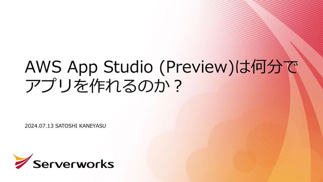 AWS App Studio (Preview)は何分で アプリを作れるのか︖ 2024.07.13 SATOSHI KANEYASU
