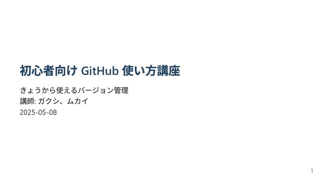 初心者向け GitHub 使い方講座 きょうから使えるバージョン管理 講師: ガクシ、ムカイ 2025‑05‑08 1