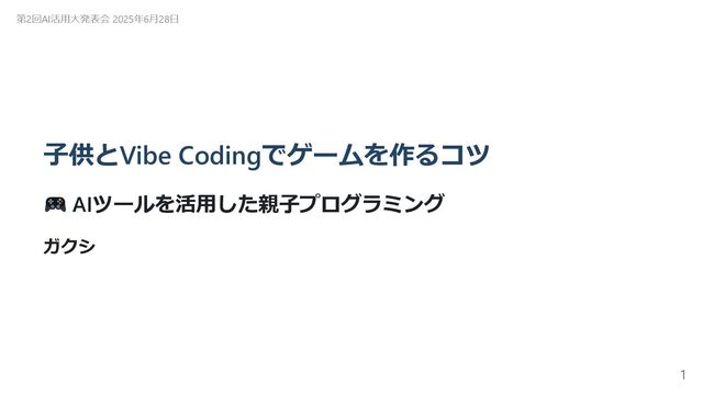 子供とVibe Codingでゲームを作るコツ AIツールを活用した親子プログラミング ガクシ 第2回AI活用大発表会 2025年6月28日 1