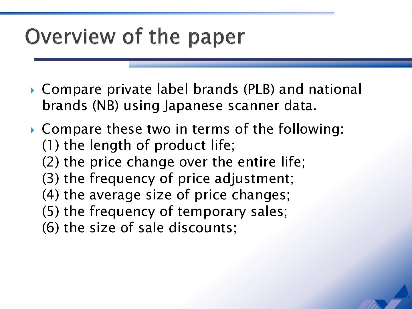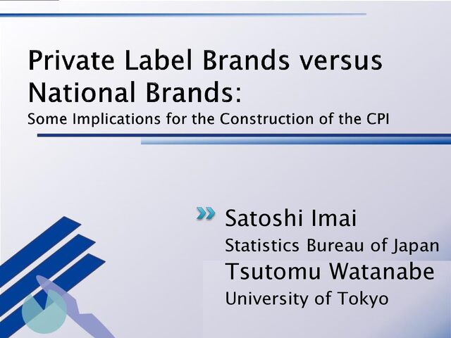 Private Label Brands versus National Brands: Some Implications for the Construction of the CPI. Satoshi Imai, Statistics Bureau of Japan, and Tsutomu Watanabe, University of Tokyo