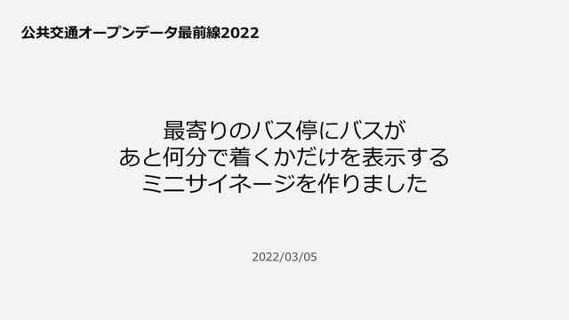 2022/03/05 公共交通オープンデータ最前線2022 最寄りのバス停にバスが あと何分で着くかだけを表示する ミニサイネージを作りました
