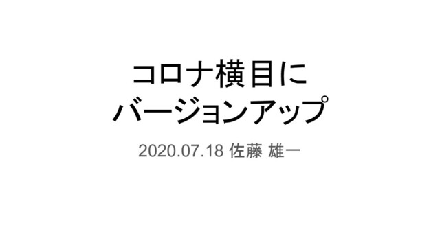 コロナ横目に バージョンアップ 2020.07.18 佐藤 雄一