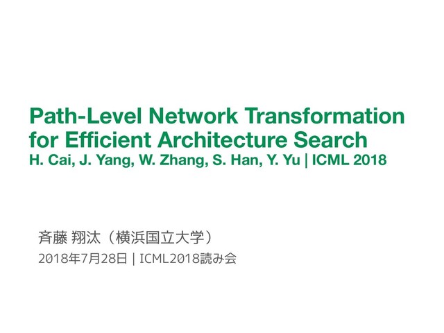 error rate (%) results of our best discovered architectures as well as state-of-the-art human-designed and automatically designed architectures on CIFAR-10. If “Reg” is checked, additional regularization techniques (e.g., Shake-Shake (Gastaldi, 2017), DropPath (Zoph et al., 2017) and Cutout (DeVries & Taylor, 2017)), along with a longer training schedule (600 epochs or 1800 epochs) are utilized when training the networks. Model Reg Params Test error Human designed ResNeXt-29 (16 ⇥ 64d) (Xie et al., 2017) DenseNet-BC ( N = 31 , k = 40) (Huang et al., 2017b) PyramidNet-Bottleneck ( N = 18 , ↵ = 270) (Han et al., 2017) PyramidNet-Bottleneck ( N = 30 , ↵ = 200) (Han et al., 2017) ResNeXt + Shake-Shake (1800 epochs) (Gastaldi, 2017) ResNeXt + Shake-Shake + Cutout (1800 epochs) (DeVries & Taylor, 2017) X X 68.1M 25.6M 27.0M 26.0M 26.2M 26.2M 3.58 3.46 3.48 3.31 2.86 2.56 Auto designed EAS (plain CNN) (Cai et al., 2018) Hierarchical ( c0 = 128) (Liu et al., 2018) Block-QNN-A ( N = 4) (Zhong et al., 2017) NAS v3 (Zoph & Le, 2017) NASNet-A (6, 32) + DropPath (600 epochs) (Zoph et al., 2017) NASNet-A (6, 32) + DropPath + Cutout (600 epochs) (Zoph et al., 2017) NASNet-A (7, 96) + DropPath + Cutout (600 epochs) (Zoph et al., 2017) X X X 23.4M - - 37.4M 3.3M 3.3M 27.6M 4.23 3.63 3.60 3.65 3.41 2.65 2.40 Ours TreeCell-B with DenseNet ( N = 6 , k = 48 , G = 2) TreeCell-A with DenseNet ( N = 6 , k = 48 , G = 2) TreeCell-A with DenseNet ( N = 16 , k = 48 , G = 2) TreeCell-B with PyramidNet ( N = 18 , ↵ = 84 , G = 2) TreeCell-A with PyramidNet ( N = 18 , ↵ = 84 , G = 2) TreeCell-A with PyramidNet ( N = 18 , ↵ = 84 , G = 2) + DropPath (600 epochs) TreeCell-A with PyramidNet ( N = 18 , ↵ = 84 , G = 2) + DropPath + Cutout (600 epochs) TreeCell-A with PyramidNet ( N = 18 , ↵ = 150 , G = 2) + DropPath + Cutout (600 epochs) X X X 3.2M 3.2M 13.1M 5.6M 5.7M 5.7M 5.7M 14.3M 3.71 3.64 3.35 3.40 3.14 2.99 2.49 2.30 Results on CIFAR-10 27 200 GPU-hoursで48,000 GPU-hoursの NAS-Net(2.4%)を超える精度(2.3%)を達成