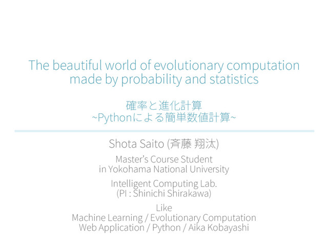 5IFCFBVUJGVMXPSMEPGFWPMVUJPOBSZDPNQVUBUJPO NBEFCZQSPCBCJMJUZBOETUBUJTUJDT 然桦ה鹌⻉鎘皾 _1ZUIPOח״知⽃侧⦼鎘皾_ 4IPUB4BJUP 俕谏 绤實 .BTUFSˏT$PVSTF4UVEFOU JO:PLPIBNB/BUJPOBM6OJWFSTJUZ *OUFMMJHFOU$PNQVUJOH-BC