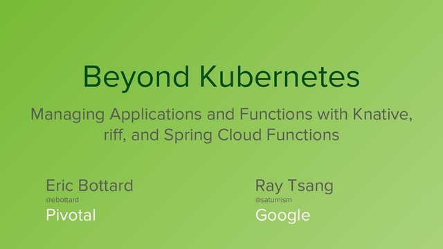 From function source code to running in Kubernetes in 5 minutes. That's the power some of the latest open source projects can bring to your fingertips. This perceived simplicity actually hides layers of abstractions underneath. In this deep dive, we'll explore all the technology behind the scenes, from Kubernetes, Istio, Knative, to riff and Spring Cloud function.