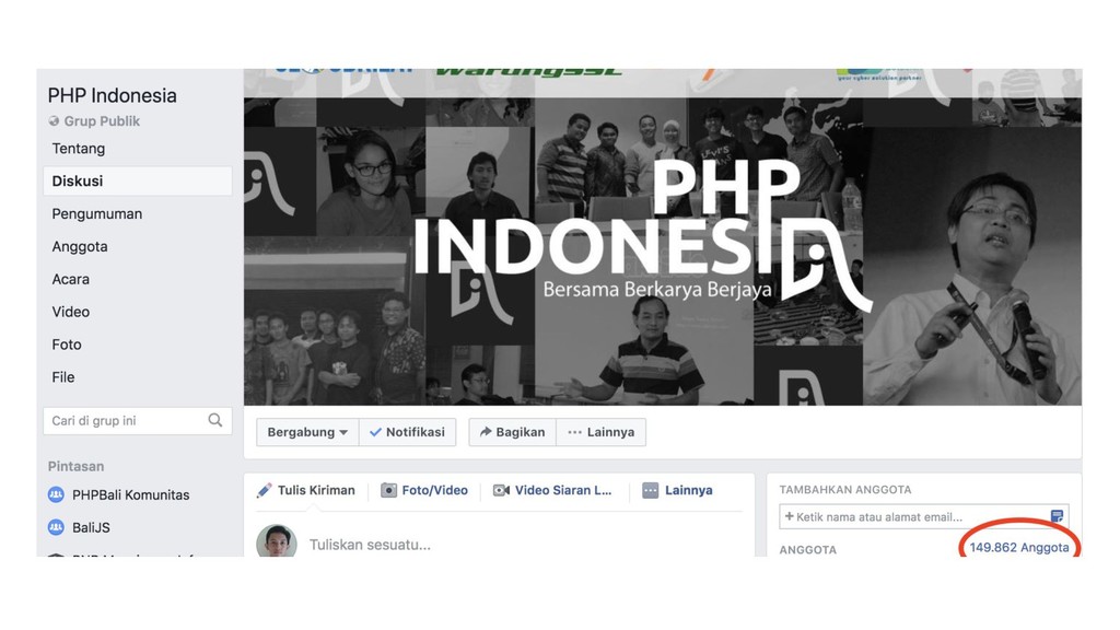 Facebook Group: https://web.facebook.com/groups/balihypertext/ Twitter: https://twitter.com/phpbali Instagram: https://www.instagram.com/baliphp/ Telegram: https://t.me/phpbali