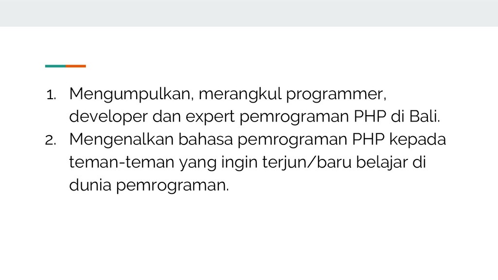 Bali. 2. Mengenalkan bahasa pemrograman PHP kepada teman-teman yang ingin terjun/baru belajar di dunia pemrograman.