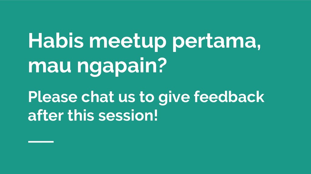 Habis meetup pertama, mau ngapain? Please chat us to give