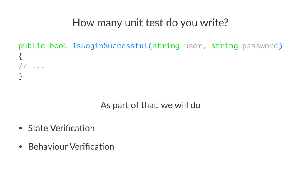 the team decides what makes sense to be a unit for the purposes of their understanding of the system and its tes)ng." - Mar)n Fowler A unit can be a method, func1on, class, group of classes.