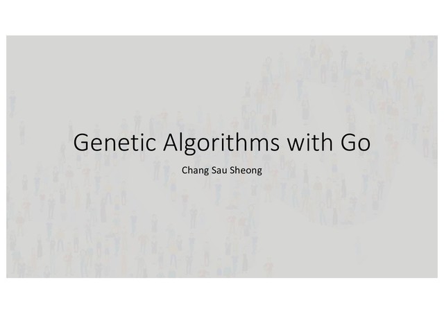 of the genes • Child is bred from the the crossover between 2 randomly picked organisms, and inherits the DNA from both func crossover(d1 Organism, d2 Organism) Organism { child := Organism{ DNA: make([]byte, len(d1.DNA)), Fitness: 0, } mid := rand.Intn(len(d1.DNA)) for i := 0; i < len(d1.DNA); i++ { if i > mid { child.DNA[i] = d1.DNA[i] } else { child.DNA[i] = d2.DNA[i] } } return child }