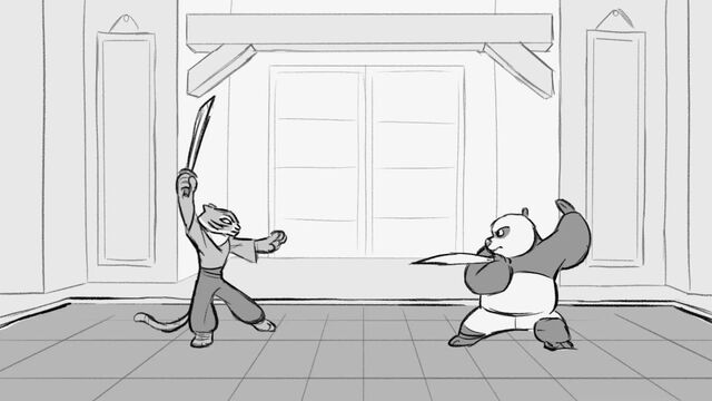 This sequence depicts a dramatic sparring match between Po and Tigress, focusing on character-driven action and visual storytelling. Developed in collaboration with a senior DreamWorks director, the boards emphasize clear staging, emotional beats, and cinematic flow.