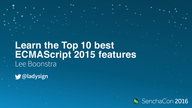 In this session, Lee will cover the top 10 new features of ECMAScript 2015, their benefits, and go through code examples of how to use them. She will also talk about ECMAScript 2015 compatibilities and incompatibilities with the most widely used browsers today, and how you should plan on developing your applications with ECMAScript 2015.