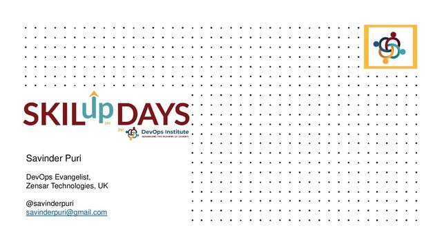 Savinder Puri DevOps Evangelist, Zensar Technologies, UK @savinderpuri
