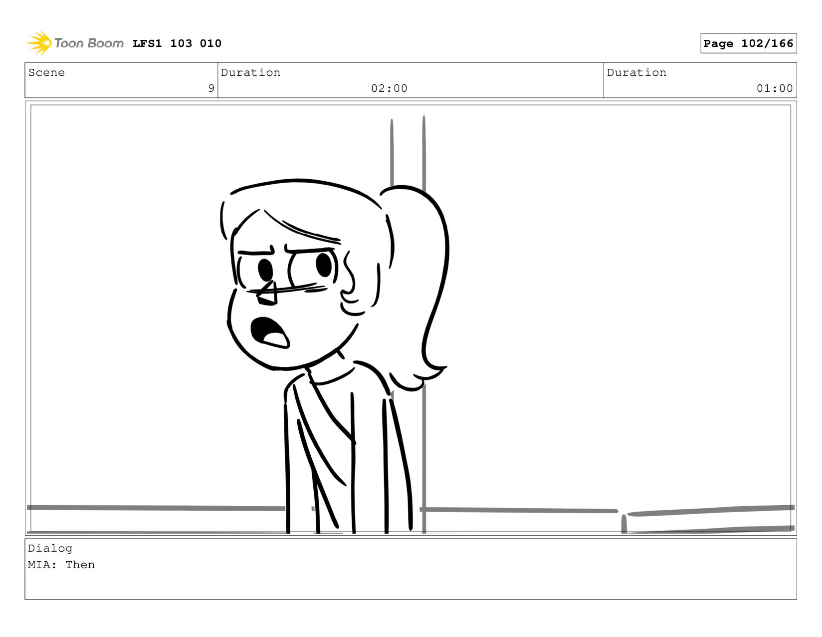 Scene 9 Duration 02:00 Duration 01:00 Dialog MIA: Then LFS1