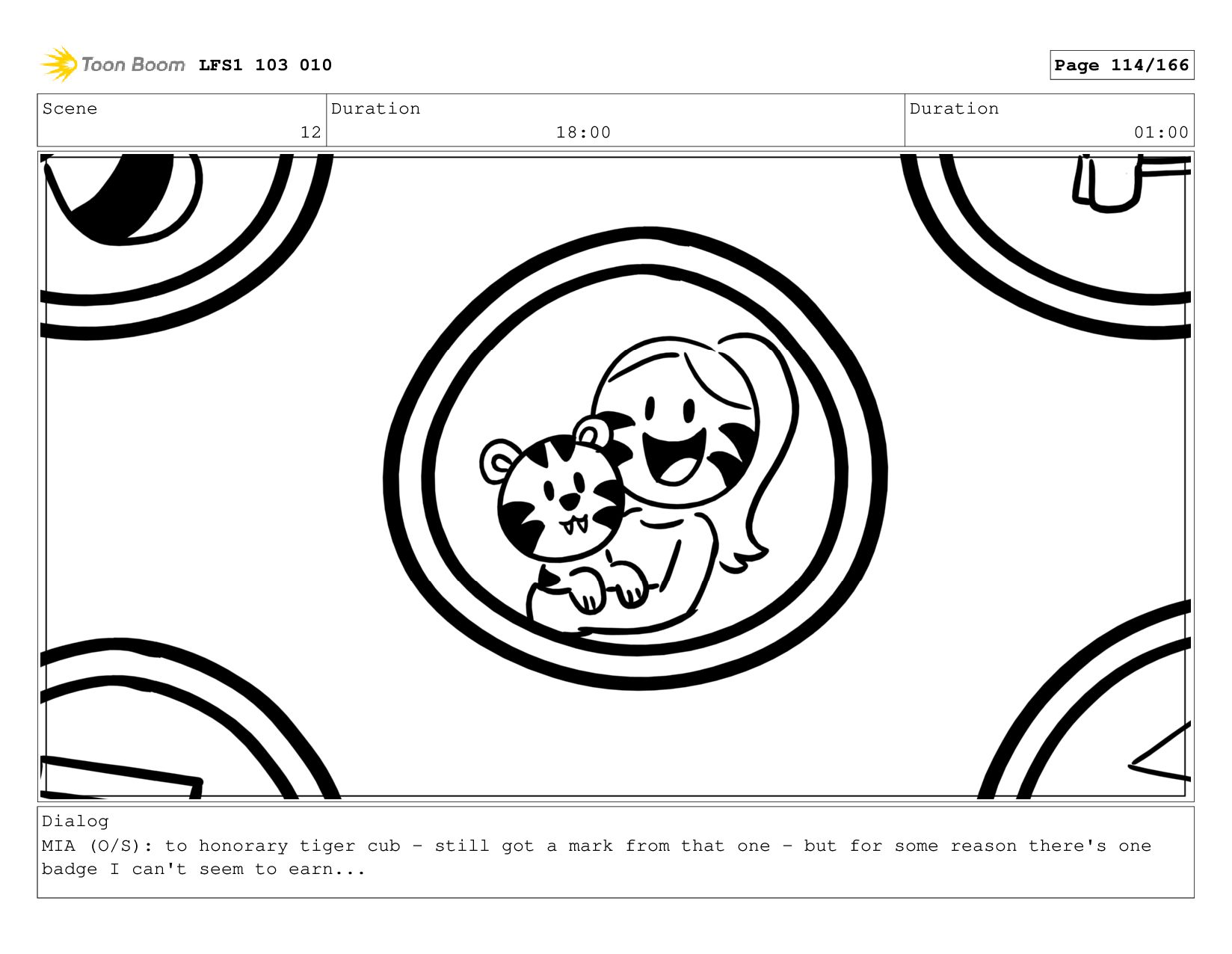 Scene 12 Duration 18:00 Duration 01:00 Dialog MIA: I did