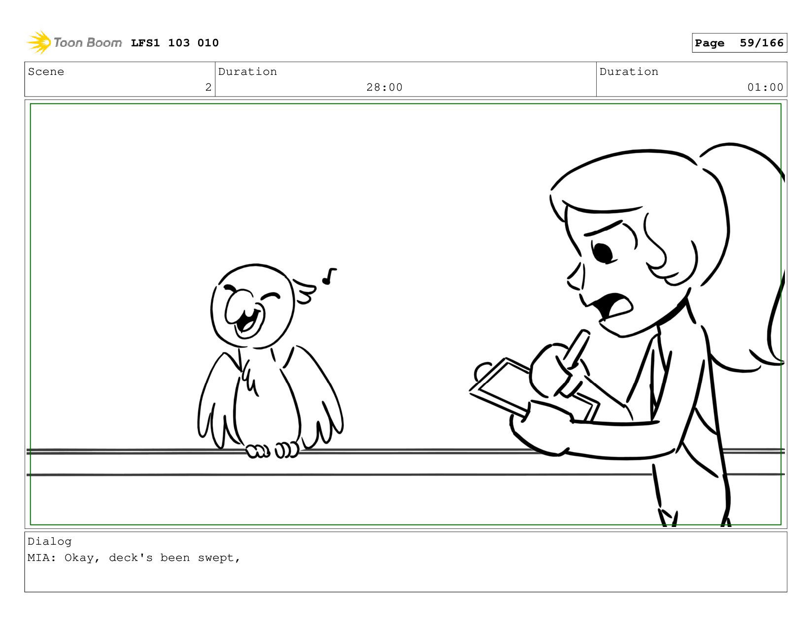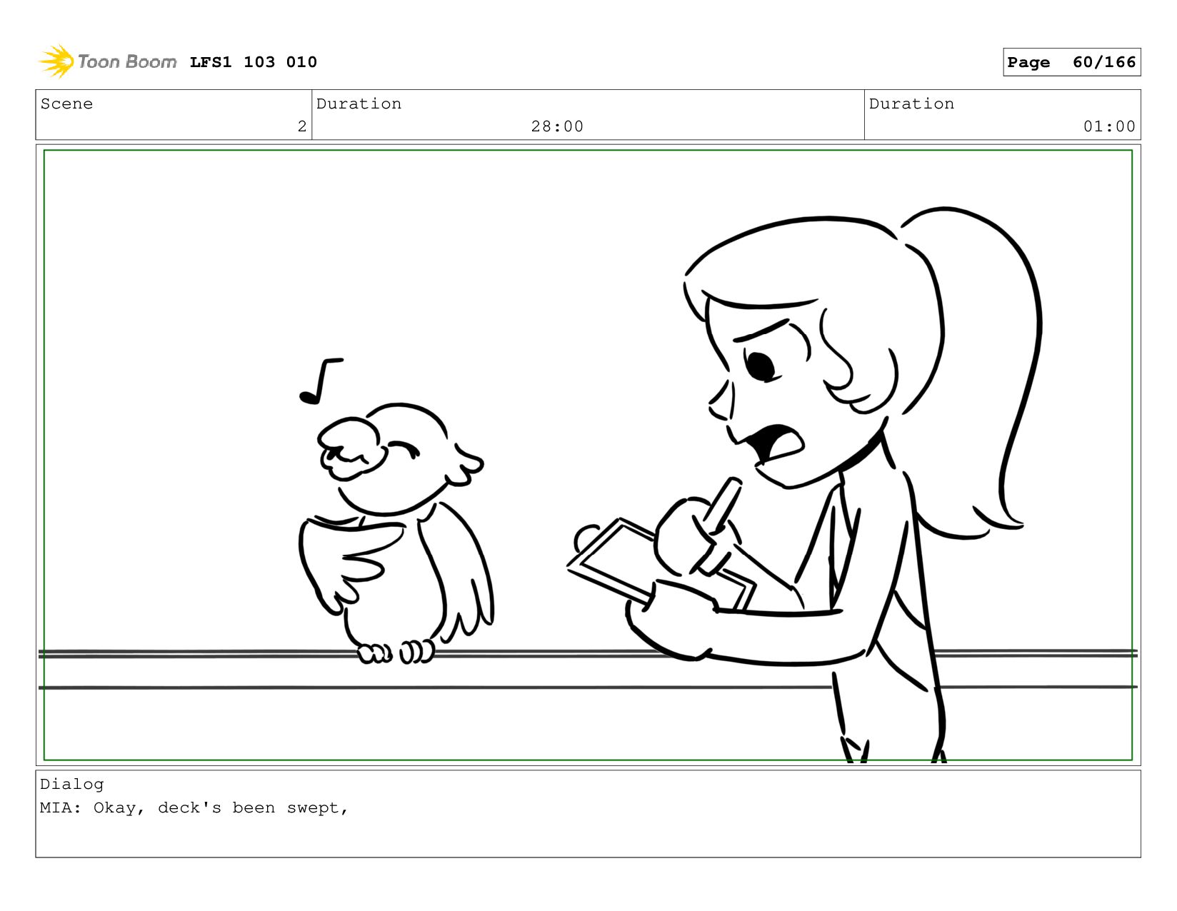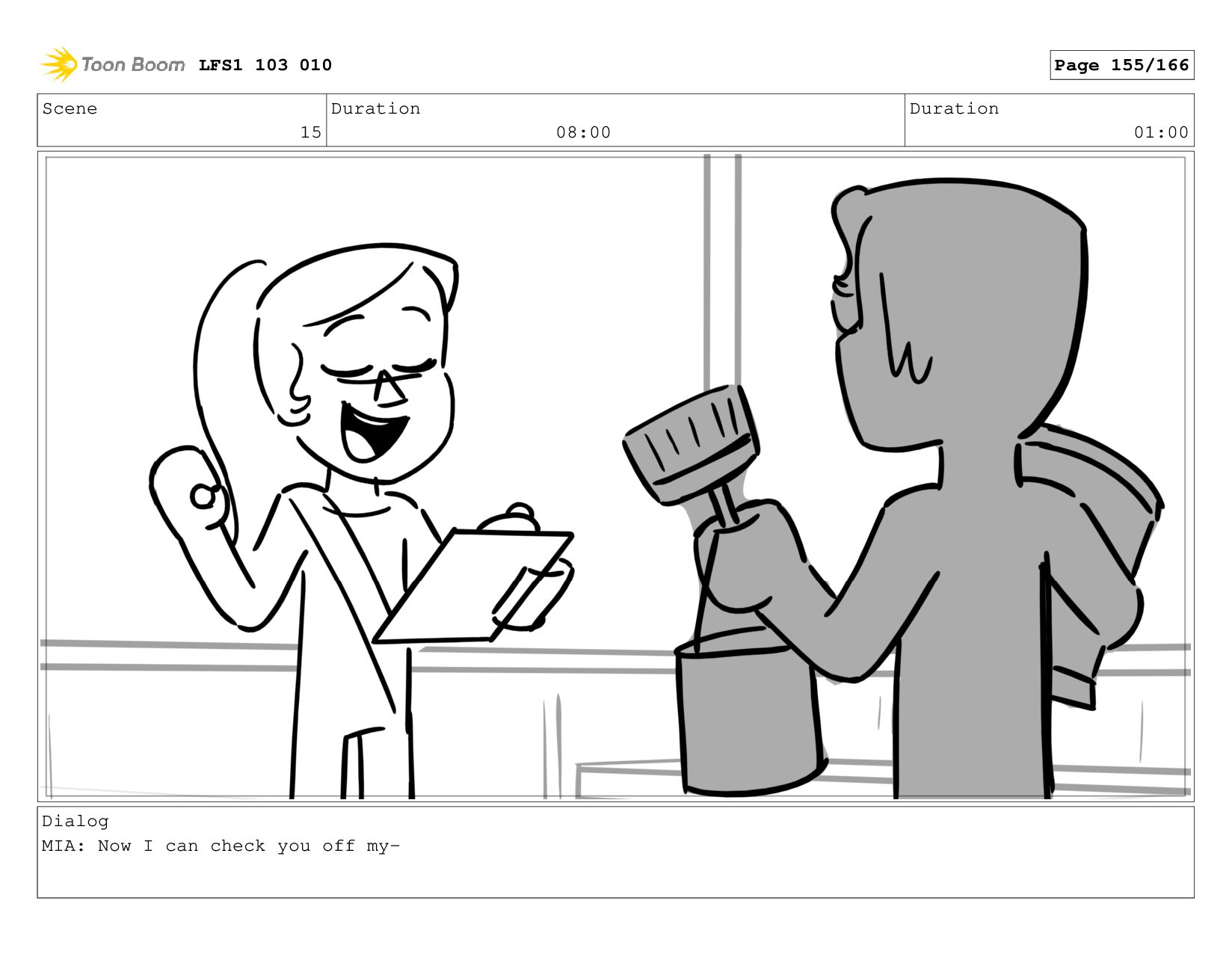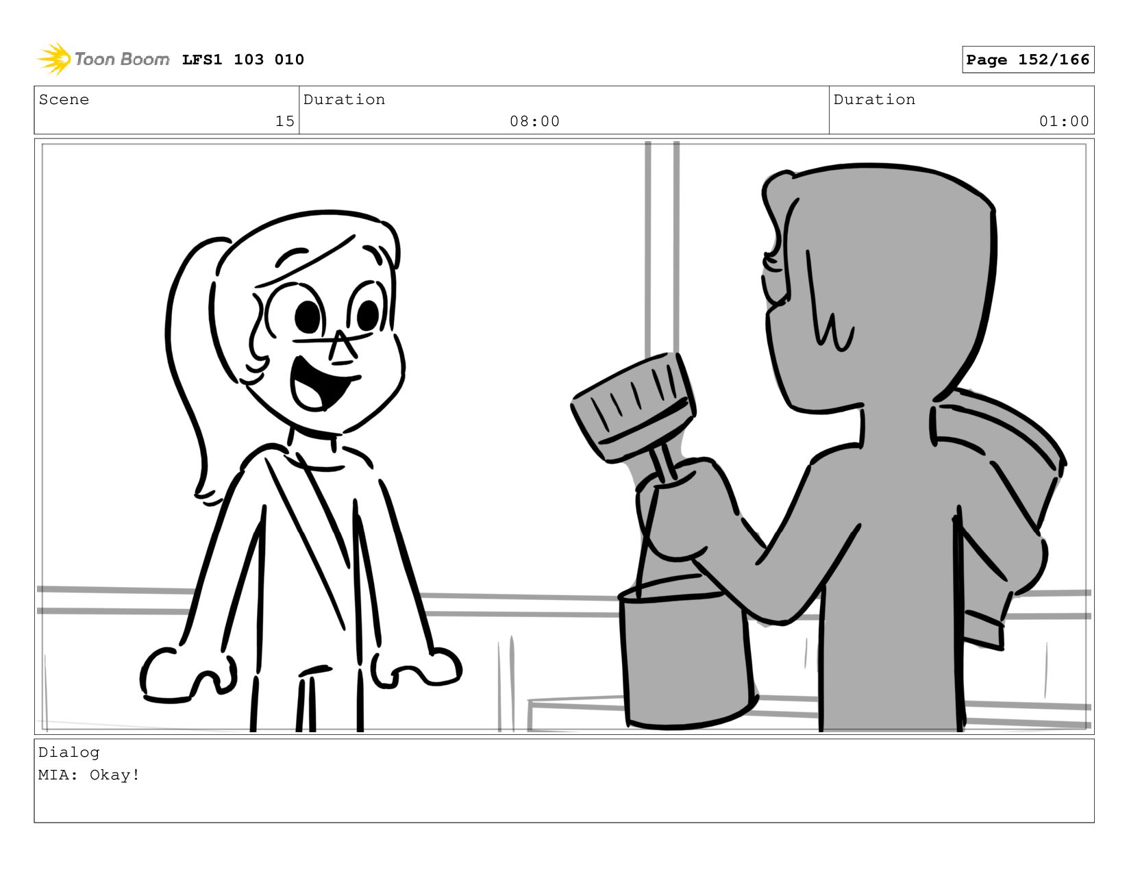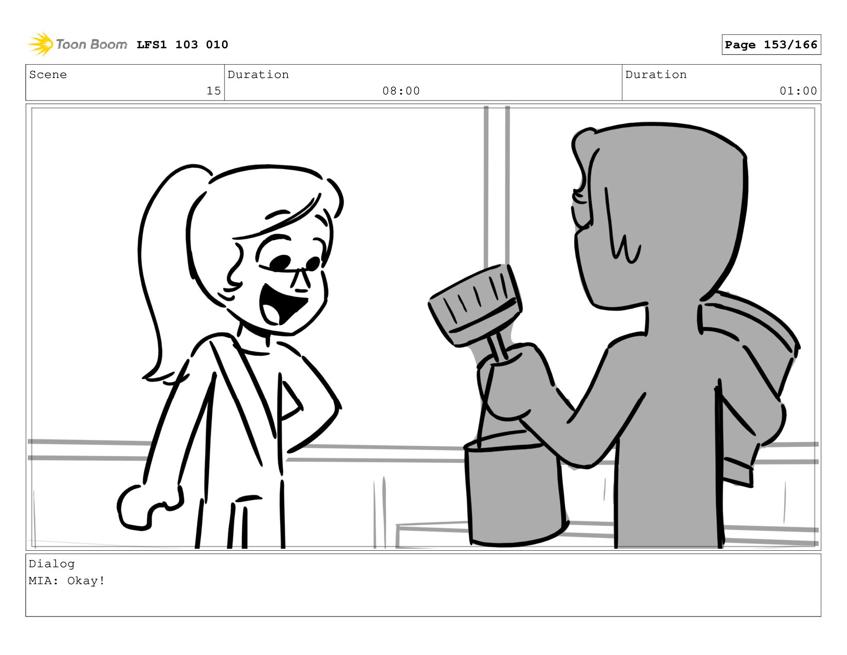 Scene 15 Duration 08:00 Duration 01:00 Dialog MIA: Okay! LFS1