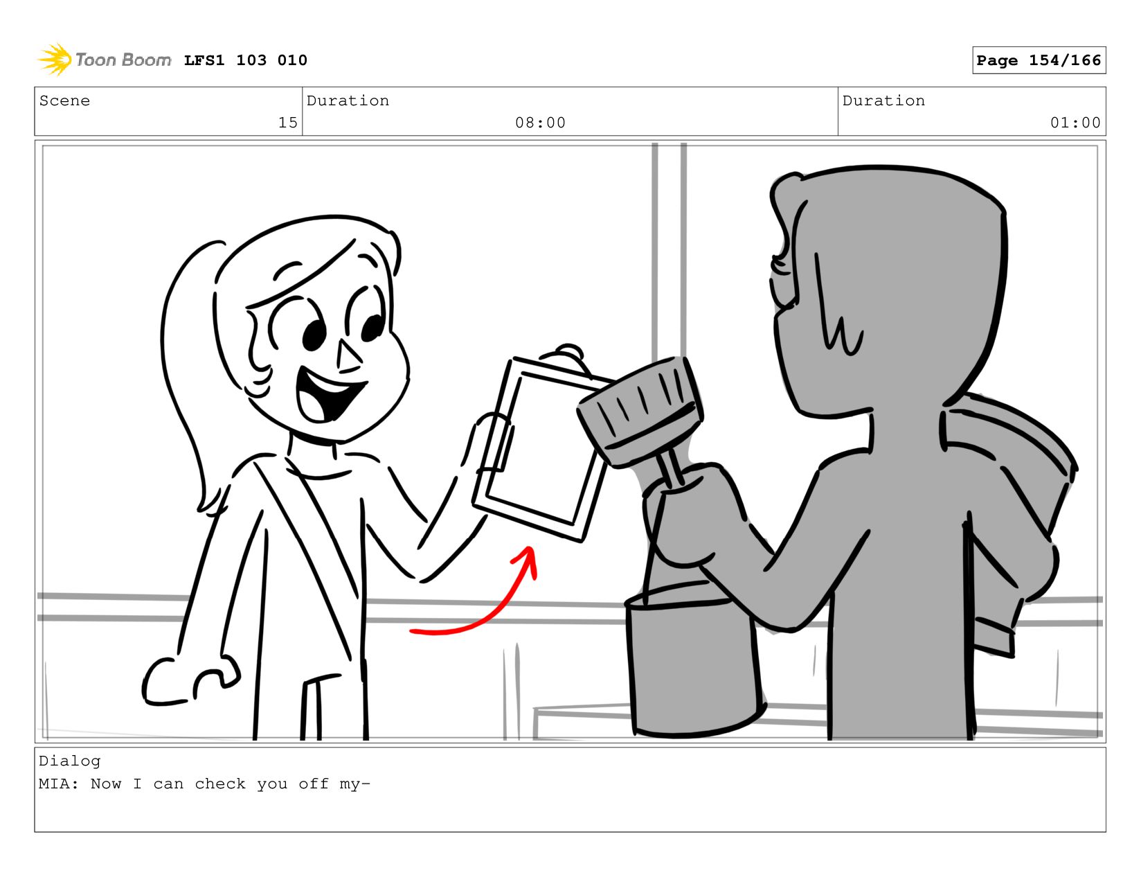 Scene 15 Duration 08:00 Duration 01:00 Dialog MIA: Now I