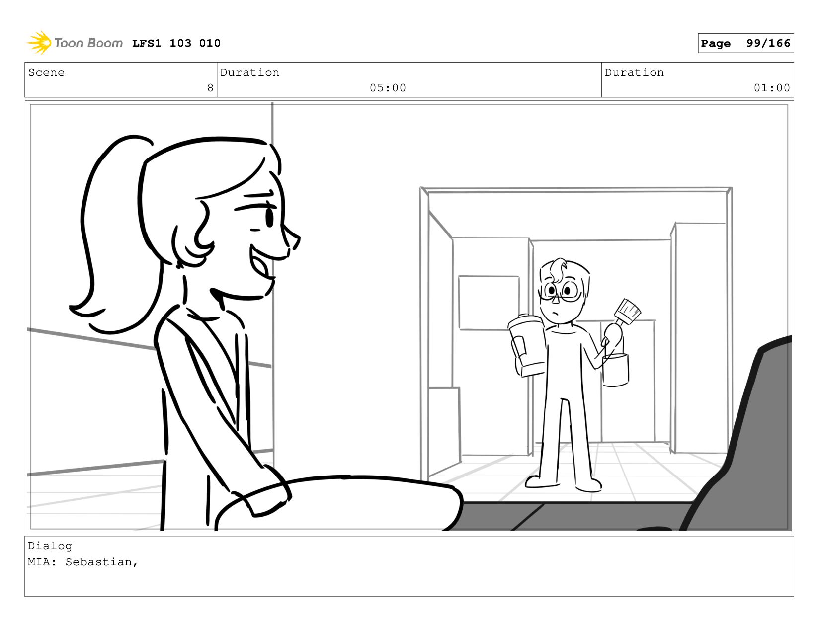 Scene 8 Duration 05:00 Duration 01:00 Dialog MIA: Sebastian, LFS1