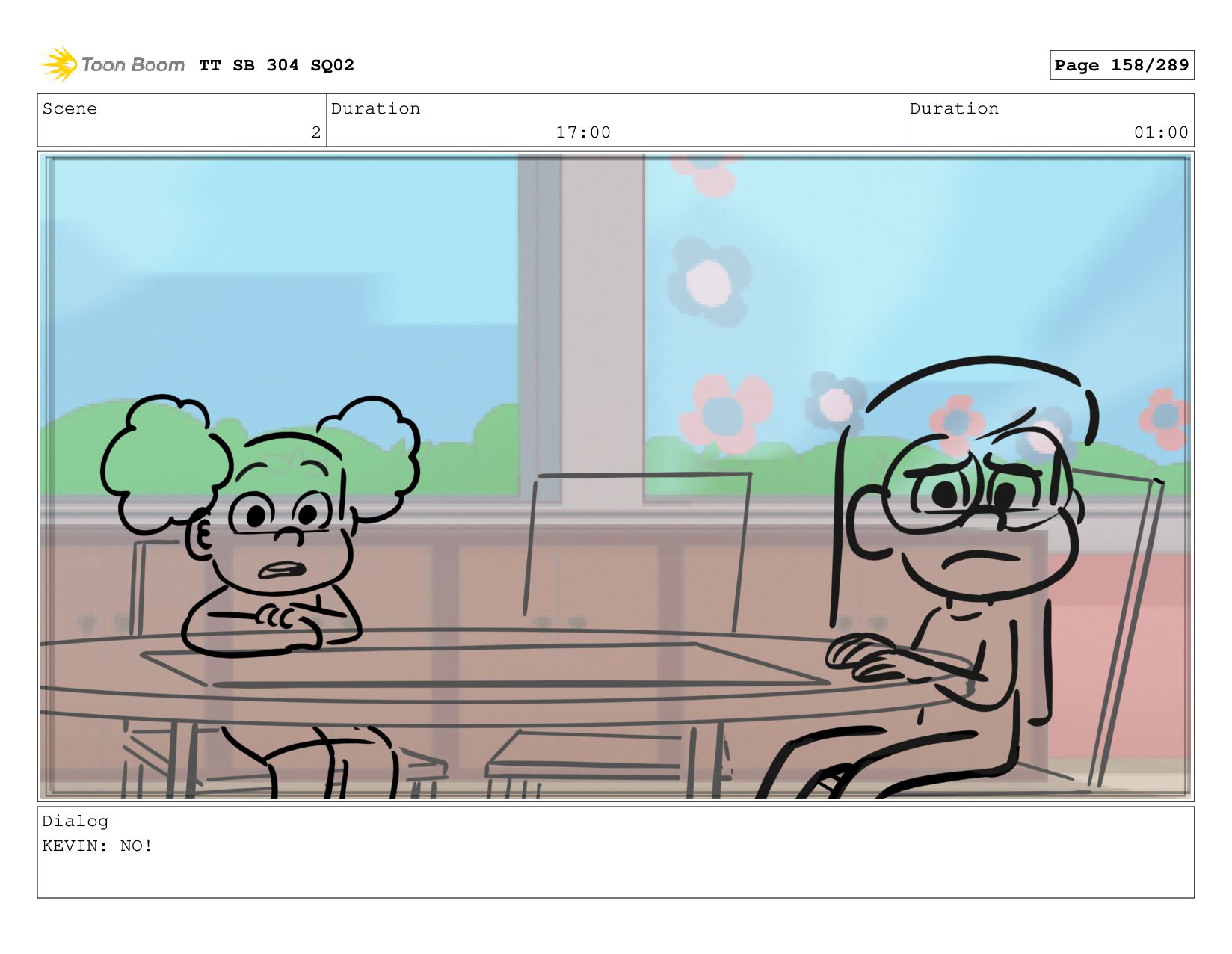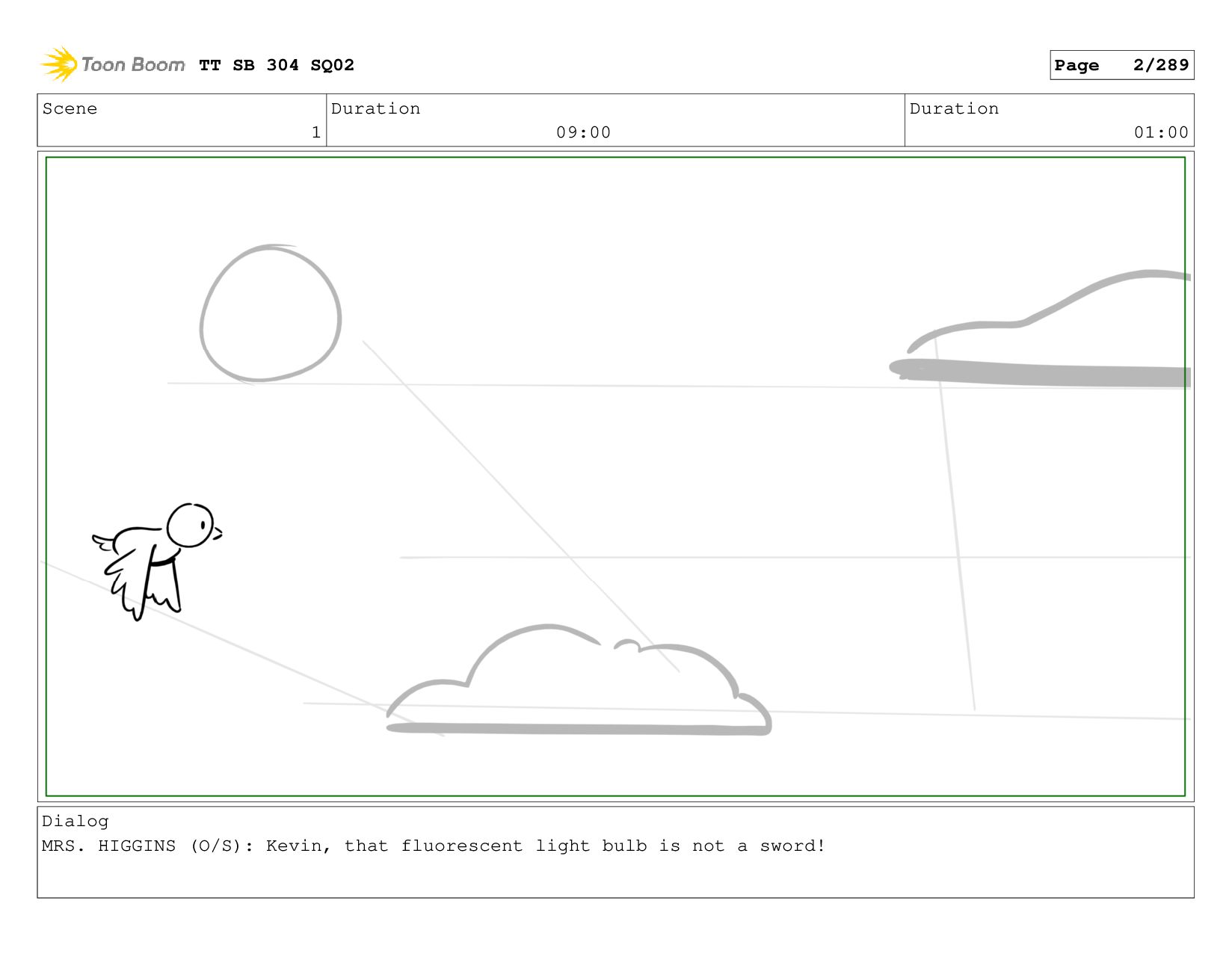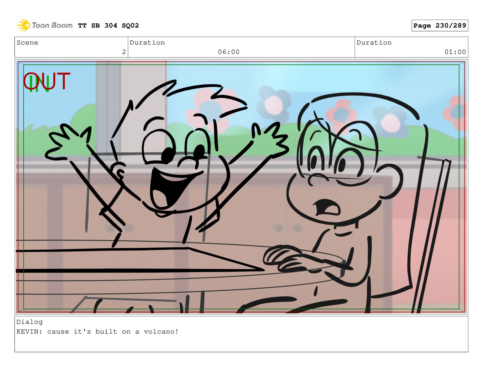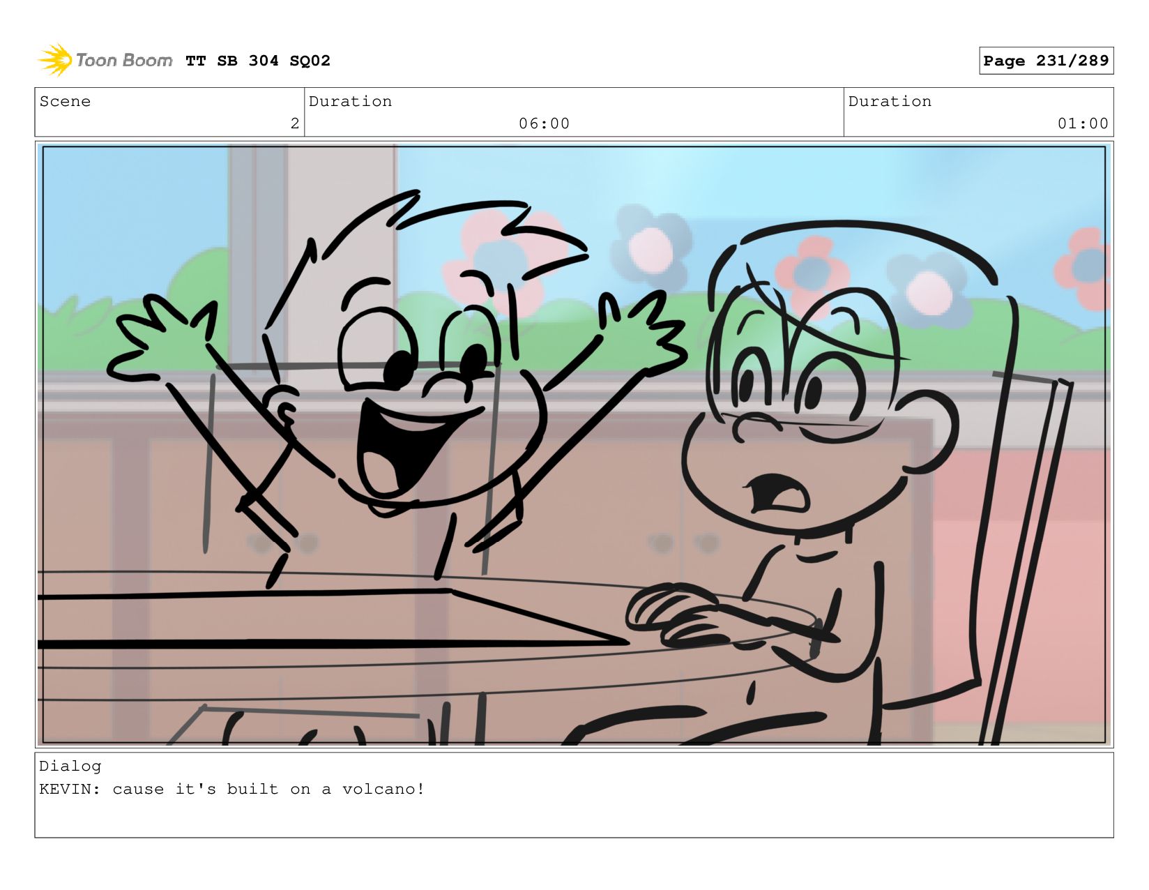 Scene 2 Duration 06:00 Duration 01:00 Dialog KEVIN: cause it's