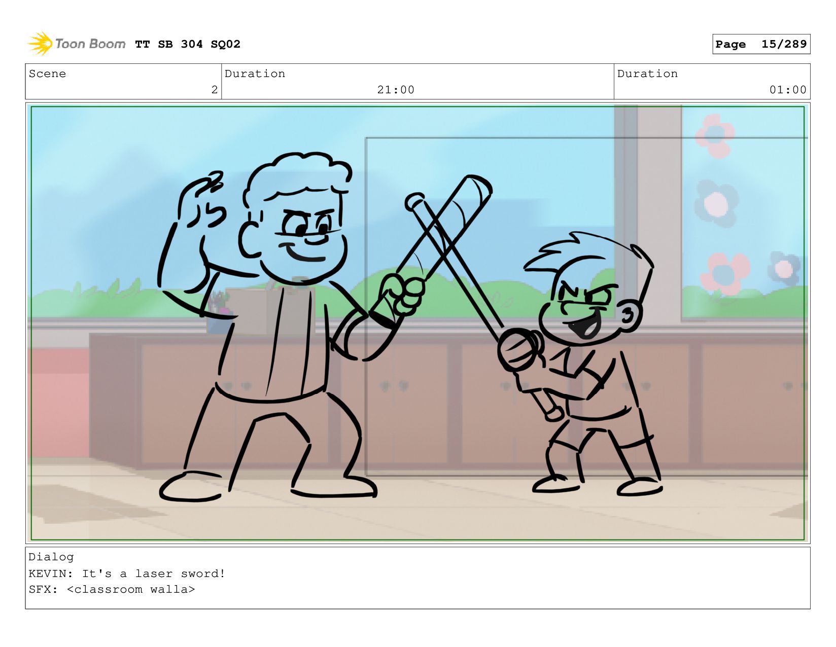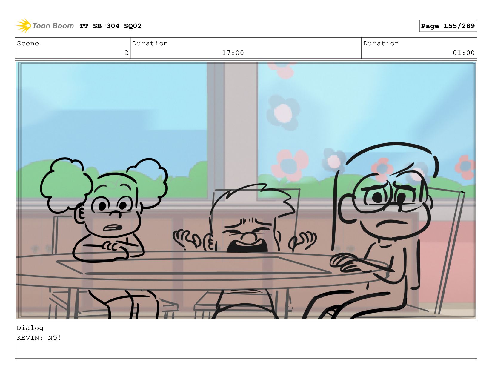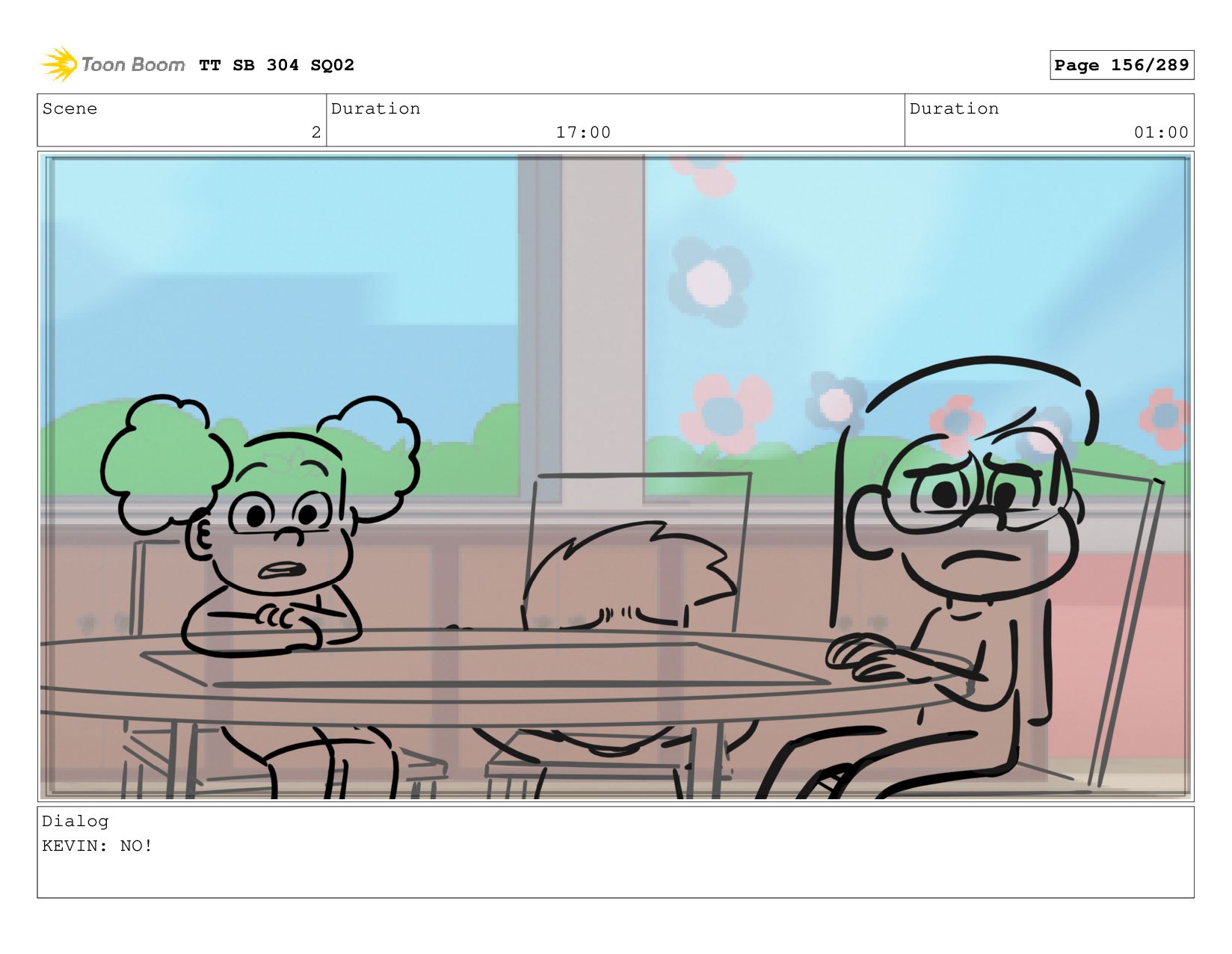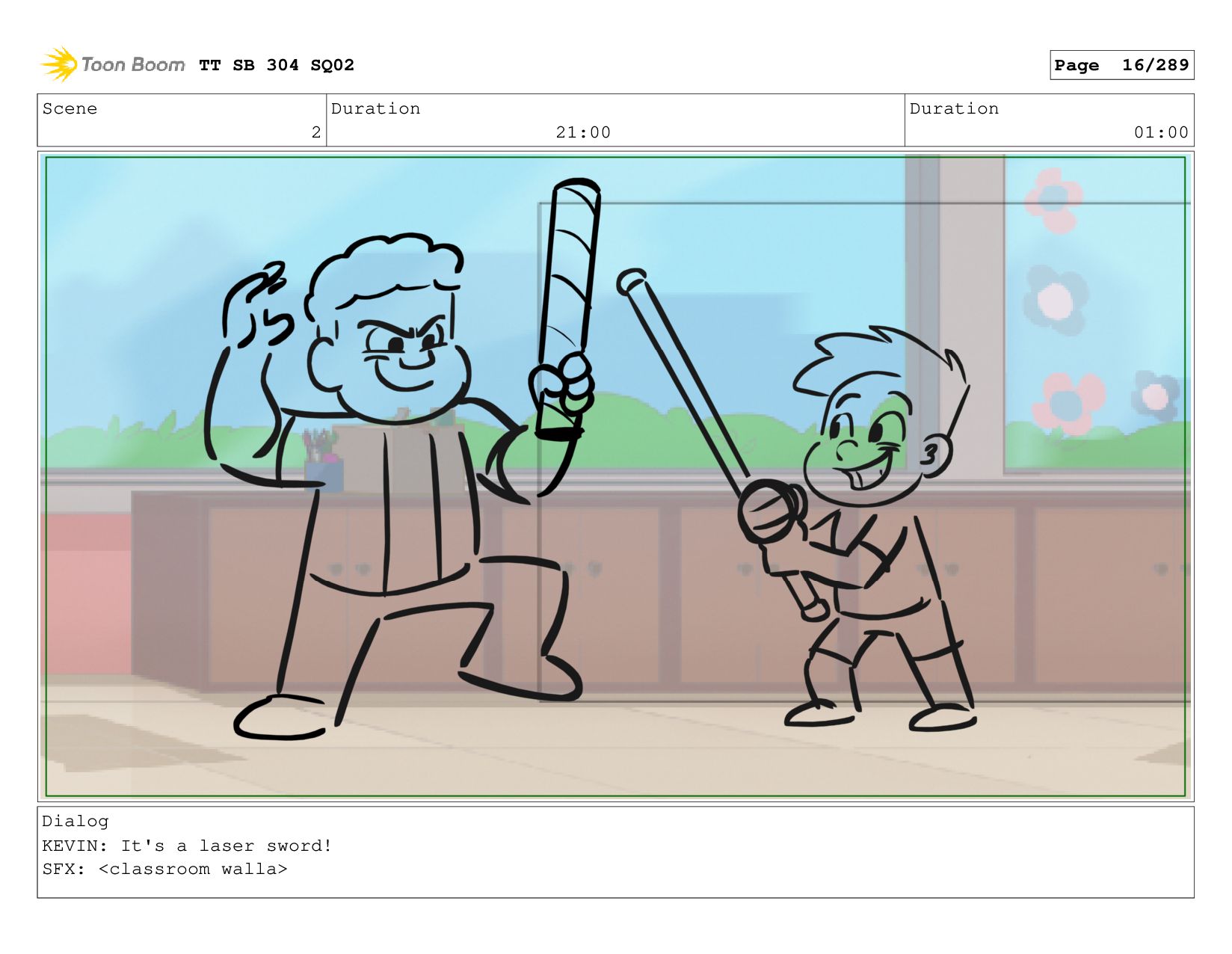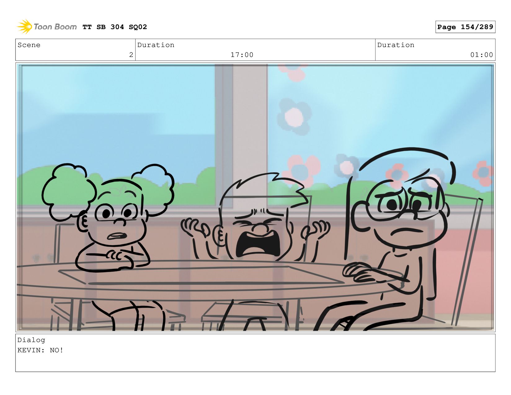 Scene 2 Duration 06:00 Duration 01:00 Dialog KEVIN: cause it's