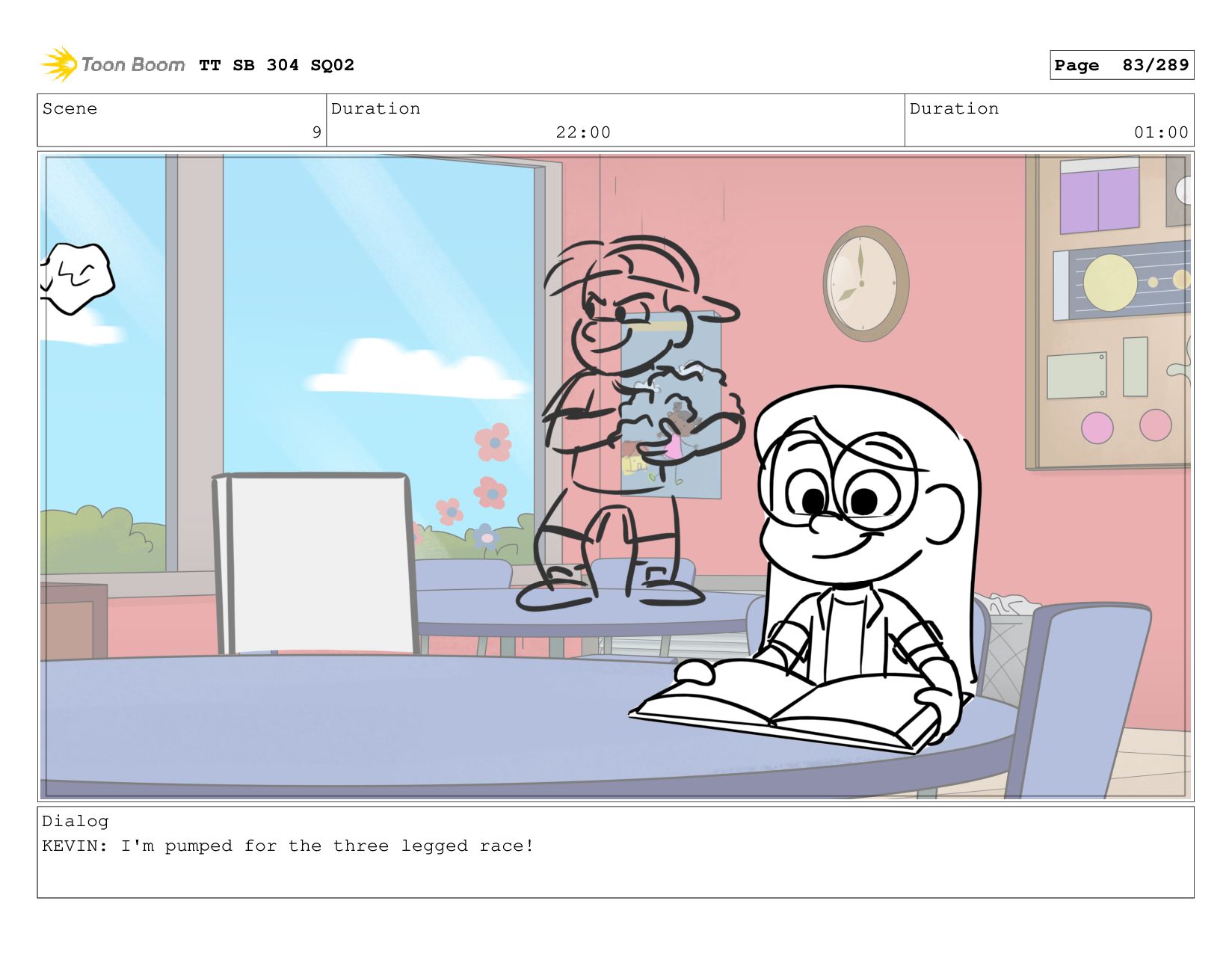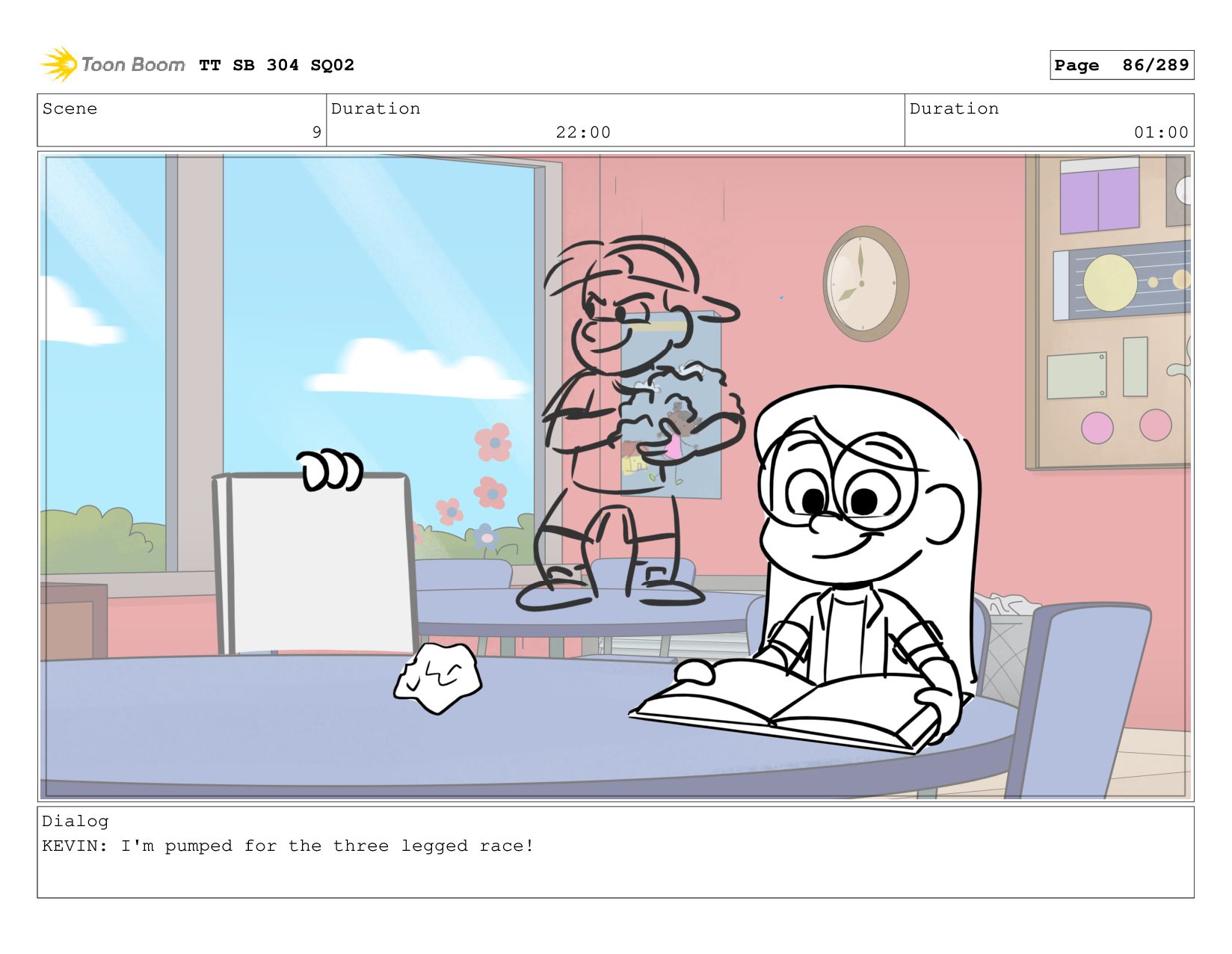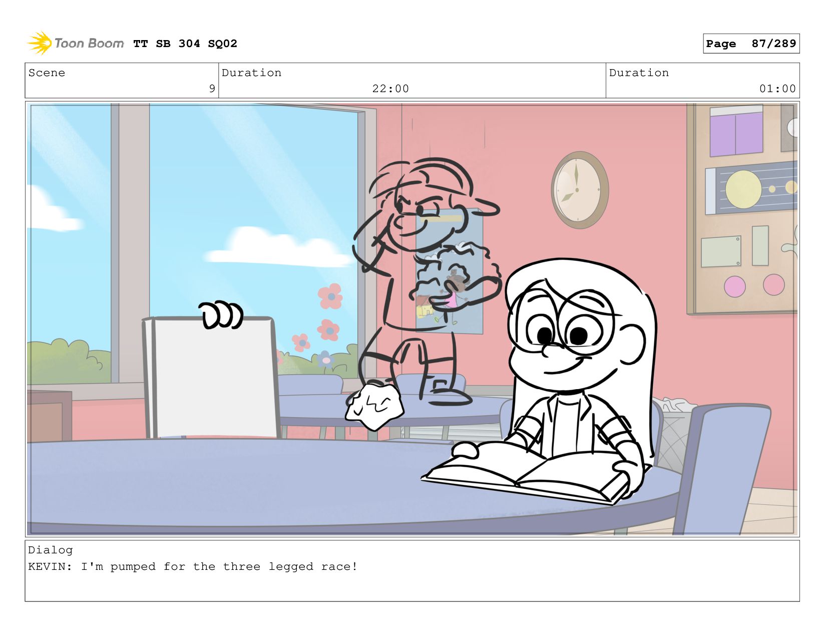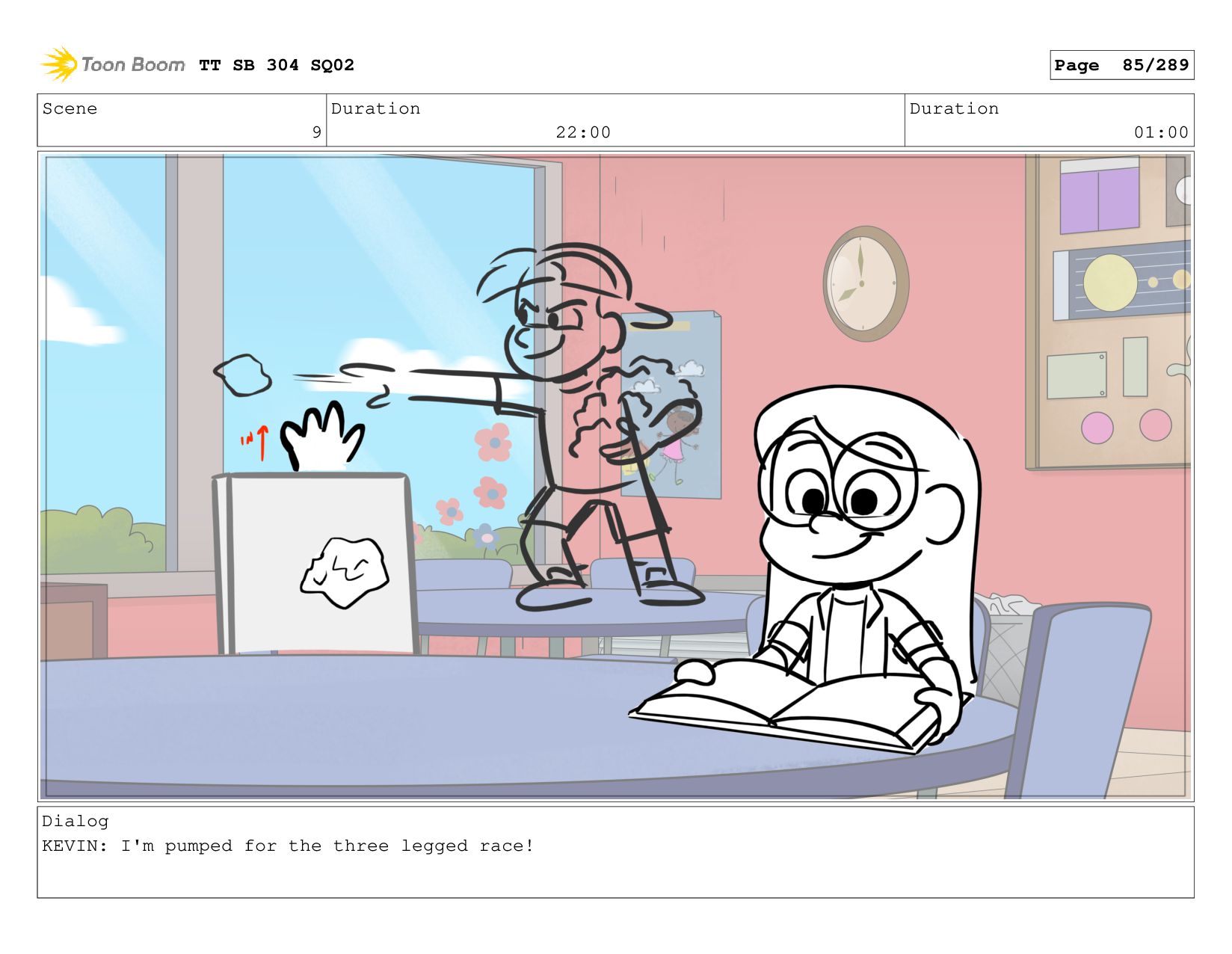Scene 2 Duration 06:00 Duration 01:00 Dialog KEVIN: cause it's