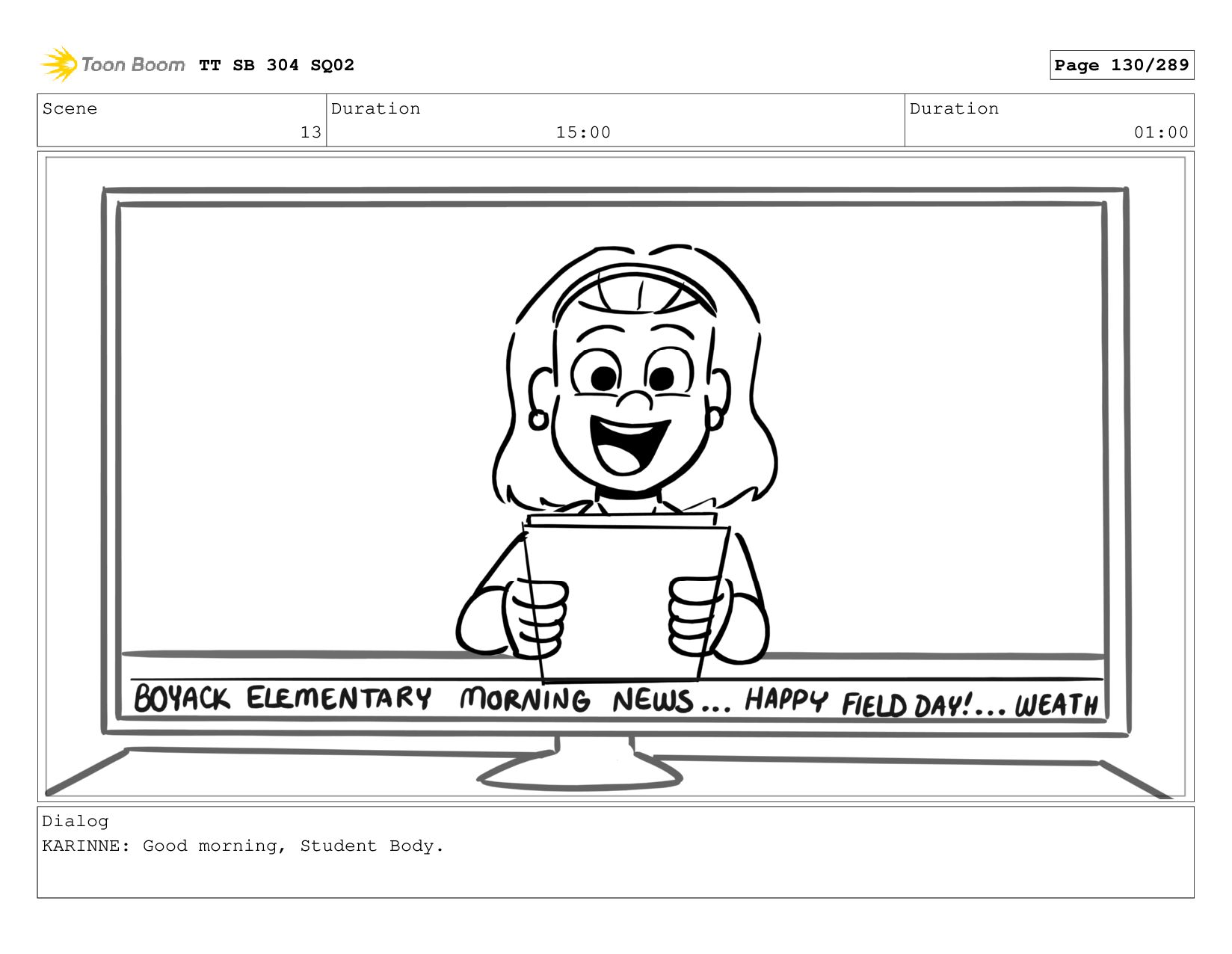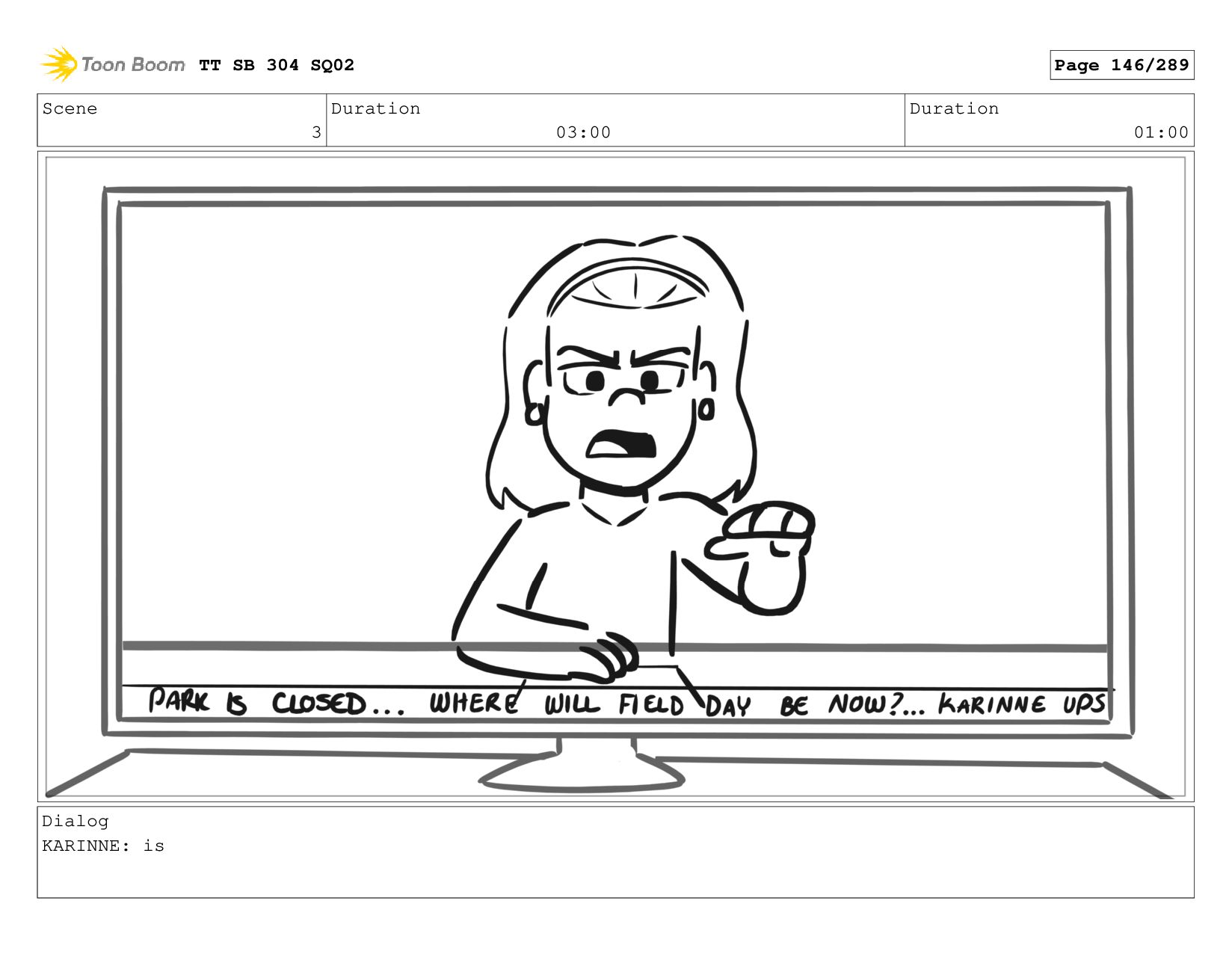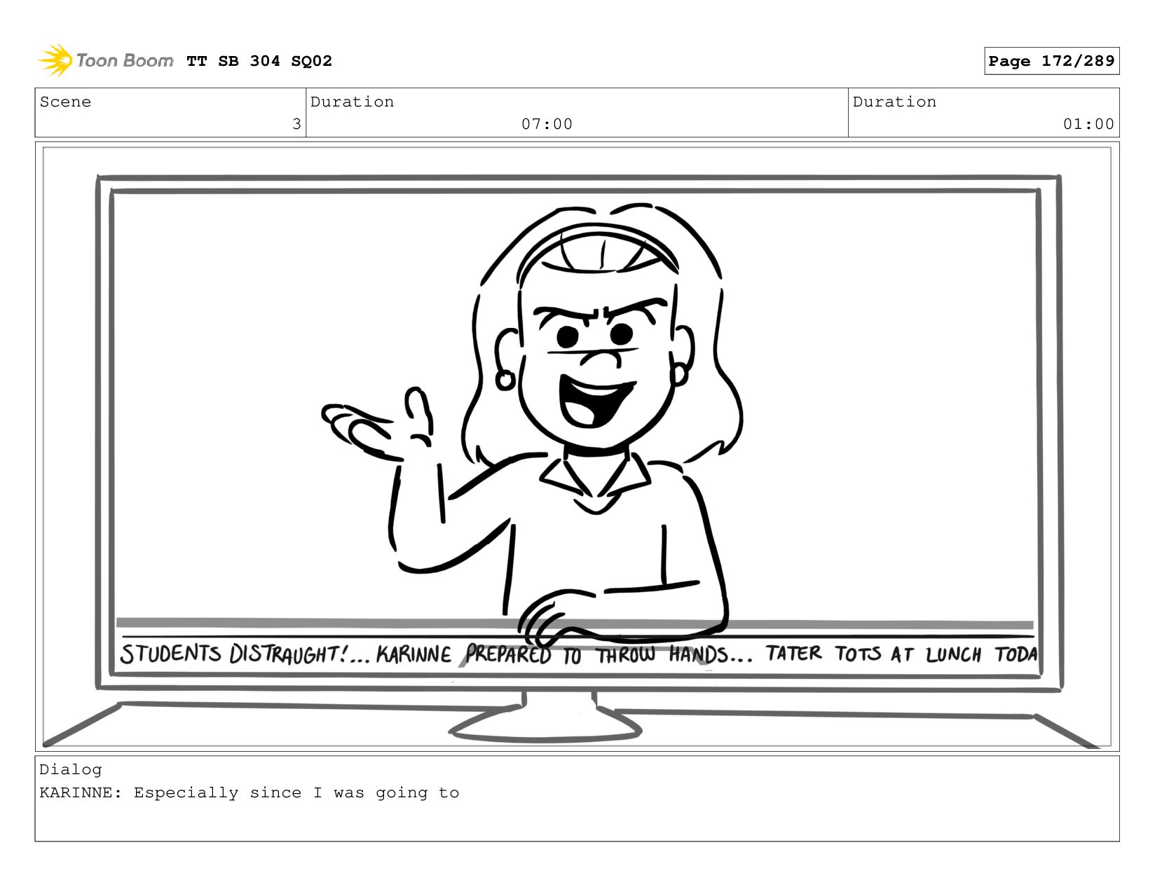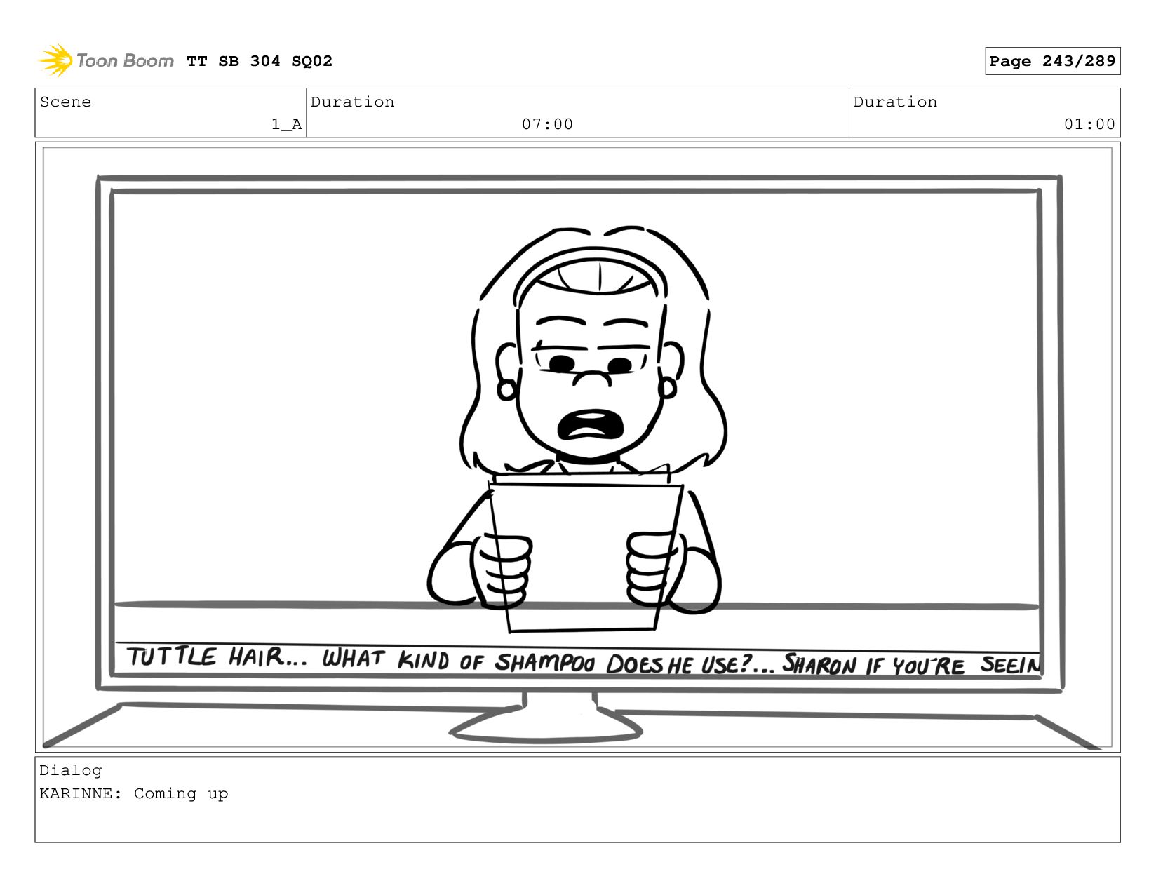 Scene 1_A Duration 07:00 Duration 01:00 Dialog KARINNE: Coming up